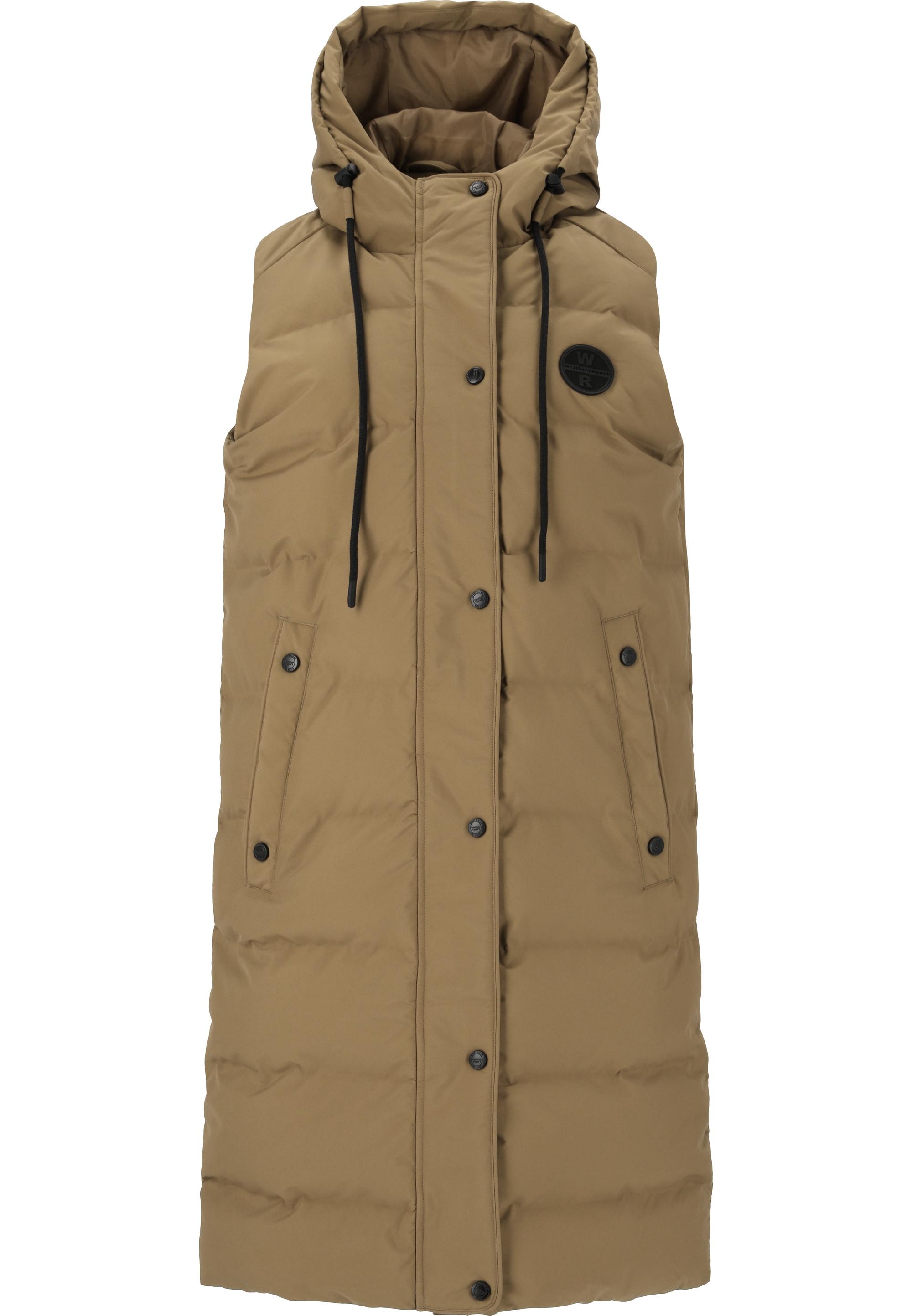 Nicht nur Steppjacken sind diesen Herbst und Winter super angesagt, auch Steppwesten haben ihren großen Auftritt – so, wie dieses klassische Modell von WEATHER REPORT für Damen. Es ist ideal für kalte Tage geeignet, denn dank des langen Schnitts hält es nicht nur den Oberkörper, sondern auch die Oberschenkel angenehm warm. Ein weicher Stehkragen reicht bis unter das Kinn, während sich die praktische Kapuze dank eines Kordelzugs perfekt an den Kopf anpassen lässt – so hat nass-kaltes Wetter keine Chance. Die atmungsaktive Steppweste besitzt einen klassischen Reißverschluss auf der Front und schließt zusätzlich über eine Knopfleiste – beides hält die Wärme optimal am Körper und sorgt für einen molligen Tragekomfort. Bei etwas wärmeren Temperaturen kann das Modell super draußen getragen werden, bei Minusgraden ist es drinnen ein gemütlicher Begleiter, in den man sich einfach nur einkuscheln möchte.