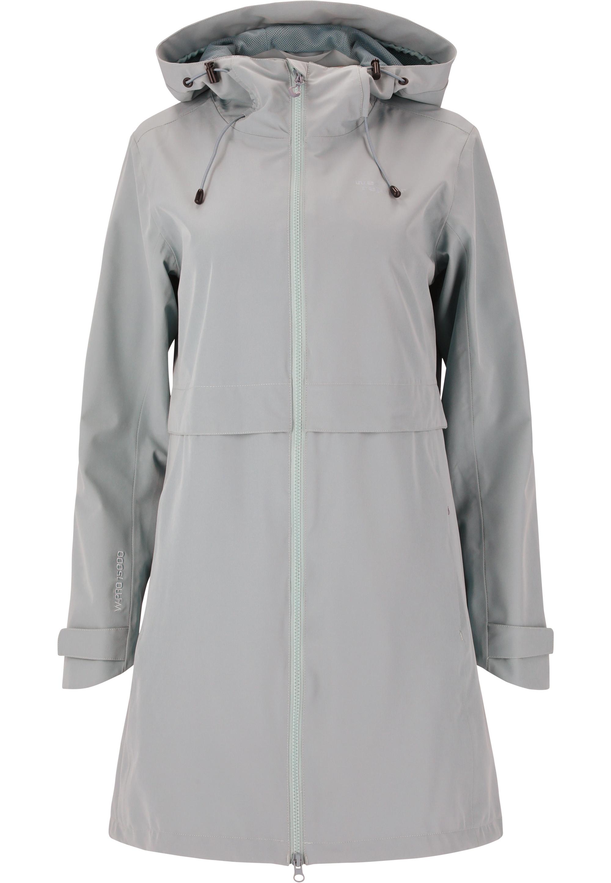 Die funktionale "Dayton W Long AWG Stretch Jacket W-PRO 15000" von WEATHER REPORT für Damen ist der perfekte Begleiter für aktive regnerische Tage. Sie ist aus 90% Polyester und 10% Elasthan mit einer Innenauskleidung aus 100% Polyester angefertigt und iwt mit einer wasserdichten Membran sowie getapten Nähten versehen, die dafür sorgen, dass du immer angenehm trocken bleibst. Insgesamt hält die Jacke einer 15.000 mm Wassersäule stand. Dank ihrer atmungsaktiven Qualität fühlt man sich dennoch stets frisch. Der Verschluss erfolgt per praktischem Zwei-Wege-Reißverschluss. Die Jacke verfügt zudem über einen verstellbaren Saum und einstellbare Kapuze mit Kordelzug und vorgeformte Ärmel mit Klettverschlüssen an den Ärmelbündchen. Die Jacke präsentiert sich in einer simplen und sportlichen Optik im smarten skandinavischen Design von WEATHER REPORT. WEATHER REPORT ist der perfekte Ausstatter für Männer, Frauen und Kinder, die es auch bei nassem und kühlem Wetter nach draußen zieht. Die dänische Lifestyle-Marke stellt robuste Regenkleidung her, die nicht nur langlebig ist, sondern auch mit funktionalen Details überzeugt. So ist man zu jeder Gelegenheit bestens ausgestattet. Ein angemessenes Preis-Leistungsverhältnis gibt es obendrein.