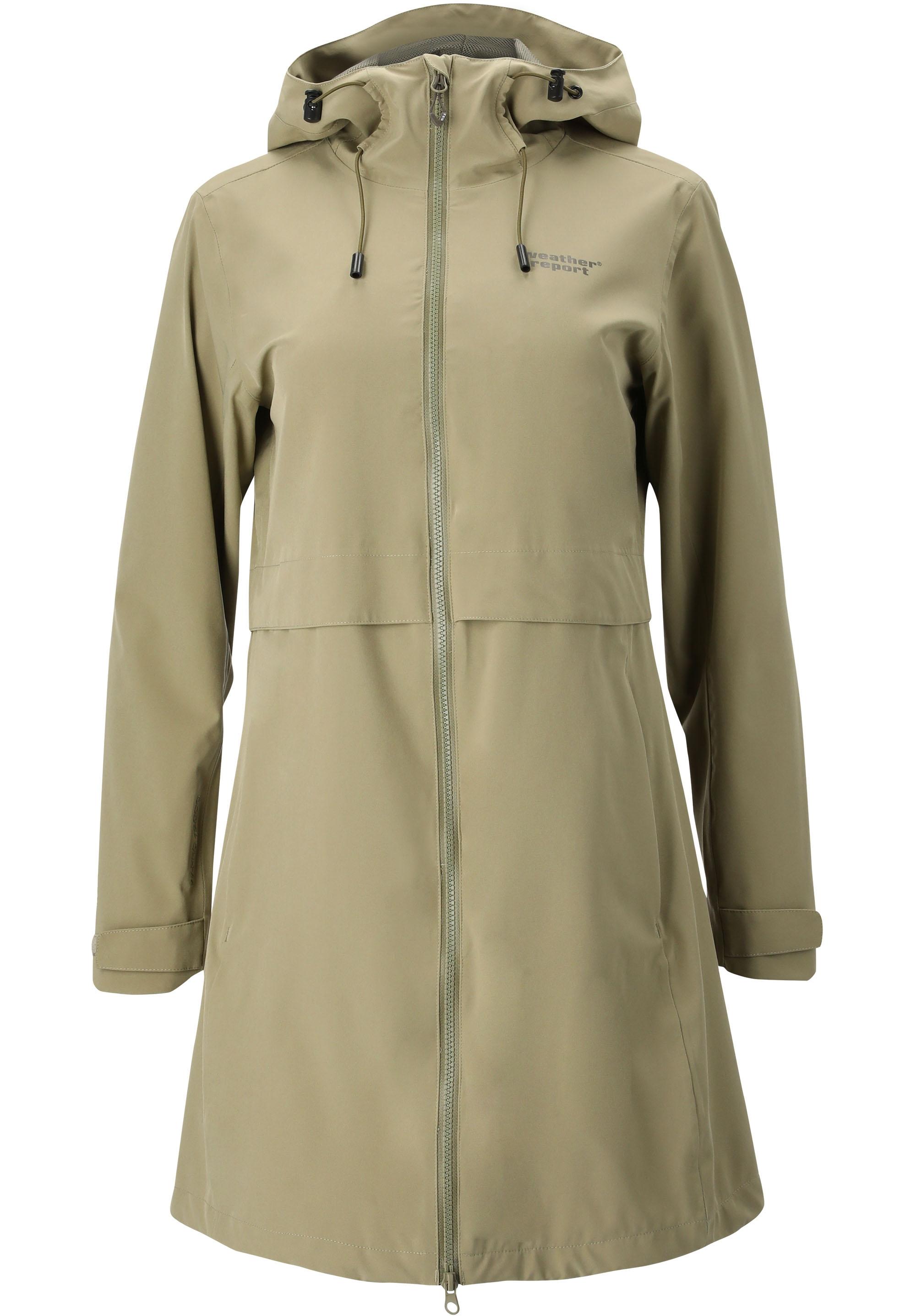 Die funktionale "Dayton W Long AWG Stretch Jacket W-PRO 15000" von WEATHER REPORT für Damen ist der perfekte Begleiter für aktive regnerische Tage. Sie ist aus 90% Polyester und 10% Elasthan mit einer Innenauskleidung aus 100% Polyester angefertigt und iwt mit einer wasserdichten Membran sowie getapten Nähten versehen, die dafür sorgen, dass du immer angenehm trocken bleibst. Insgesamt hält die Jacke einer 15.000 mm Wassersäule stand. Dank ihrer atmungsaktiven Qualität fühlt man sich dennoch stets frisch. Der Verschluss erfolgt per praktischem Zwei-Wege-Reißverschluss. Die Jacke verfügt zudem über einen verstellbaren Saum und einstellbare Kapuze mit Kordelzug und vorgeformte Ärmel mit Klettverschlüssen an den Ärmelbündchen. Die Jacke präsentiert sich in einer simplen und sportlichen Optik im smarten skandinavischen Design von WEATHER REPORT. WEATHER REPORT ist der perfekte Ausstatter für Männer, Frauen und Kinder, die es auch bei nassem und kühlem Wetter nach draußen zieht. Die dänische Lifestyle-Marke stellt robuste Regenkleidung her, die nicht nur langlebig ist, sondern auch mit funktionalen Details überzeugt. So ist man zu jeder Gelegenheit bestens ausgestattet. Ein angemessenes Preis-Leistungsverhältnis gibt es obendrein.