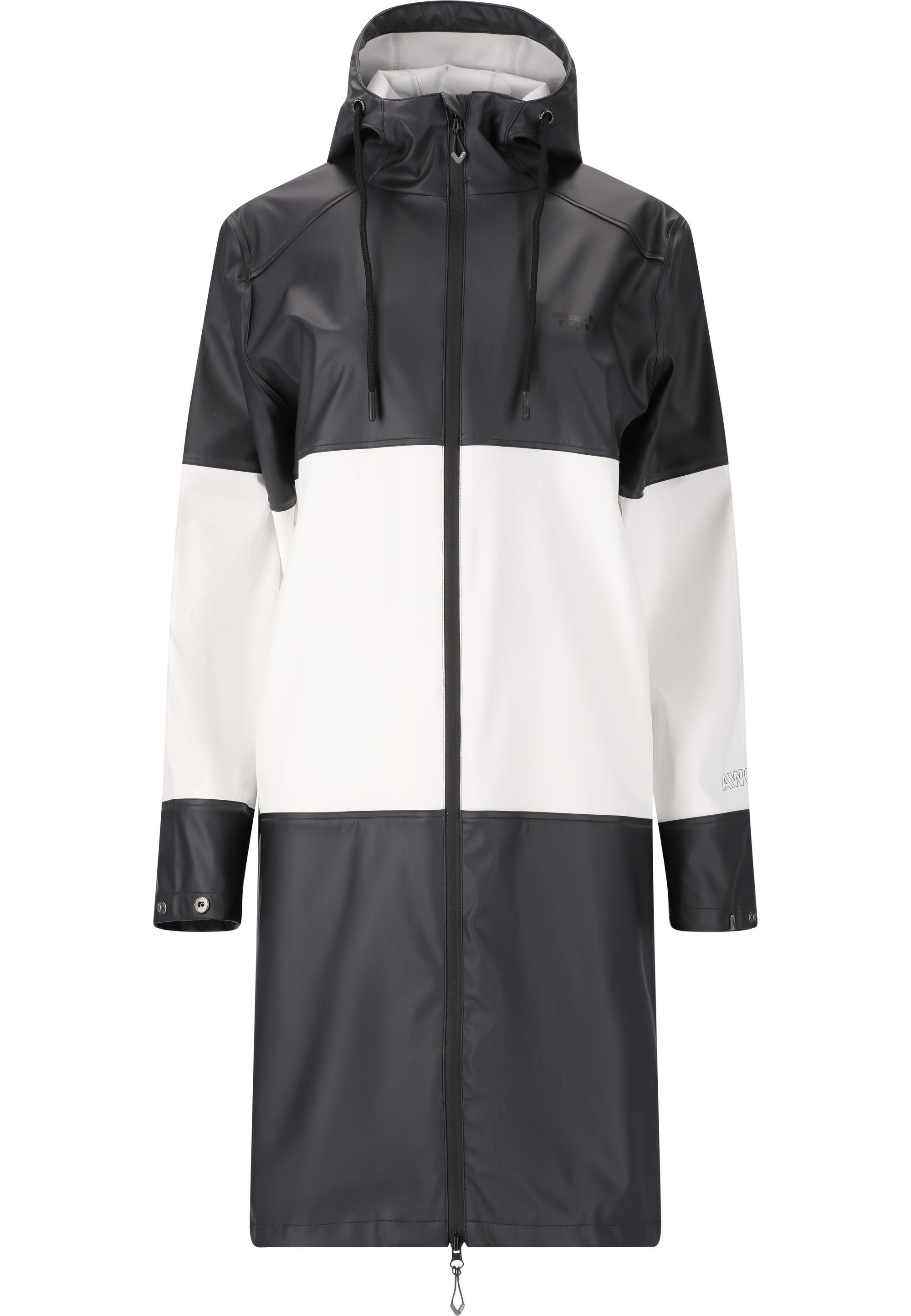 Der Regenmantel „Dew“ von WEATHER REPORT verbindet trendiges Color-Blocking mit zuverlässigem Schutz vor Regen und Wind. Dank wasserabweisender Beschichtung, wasserdichter Membran und winddichtem Material bist du auch bei unbeständigem Wetter rundum geschützt. Reflektoren erhöhen die Sichtbarkeit bei schlechten Lichtverhältnissen, während die verstellbare Kapuze und die verstellbaren Ärmelabschlüsse eine individuelle Passform ermöglichen. Der taillierte Schnitt mit Gürtel betont deine feminine Silhouette und praktische Reißverschlusstaschen bieten sicheren Stauraum für deine wichtigsten Dinge. So bist du im Alltag bestens gerüstet – mit Stil und Funktionalität vereint.