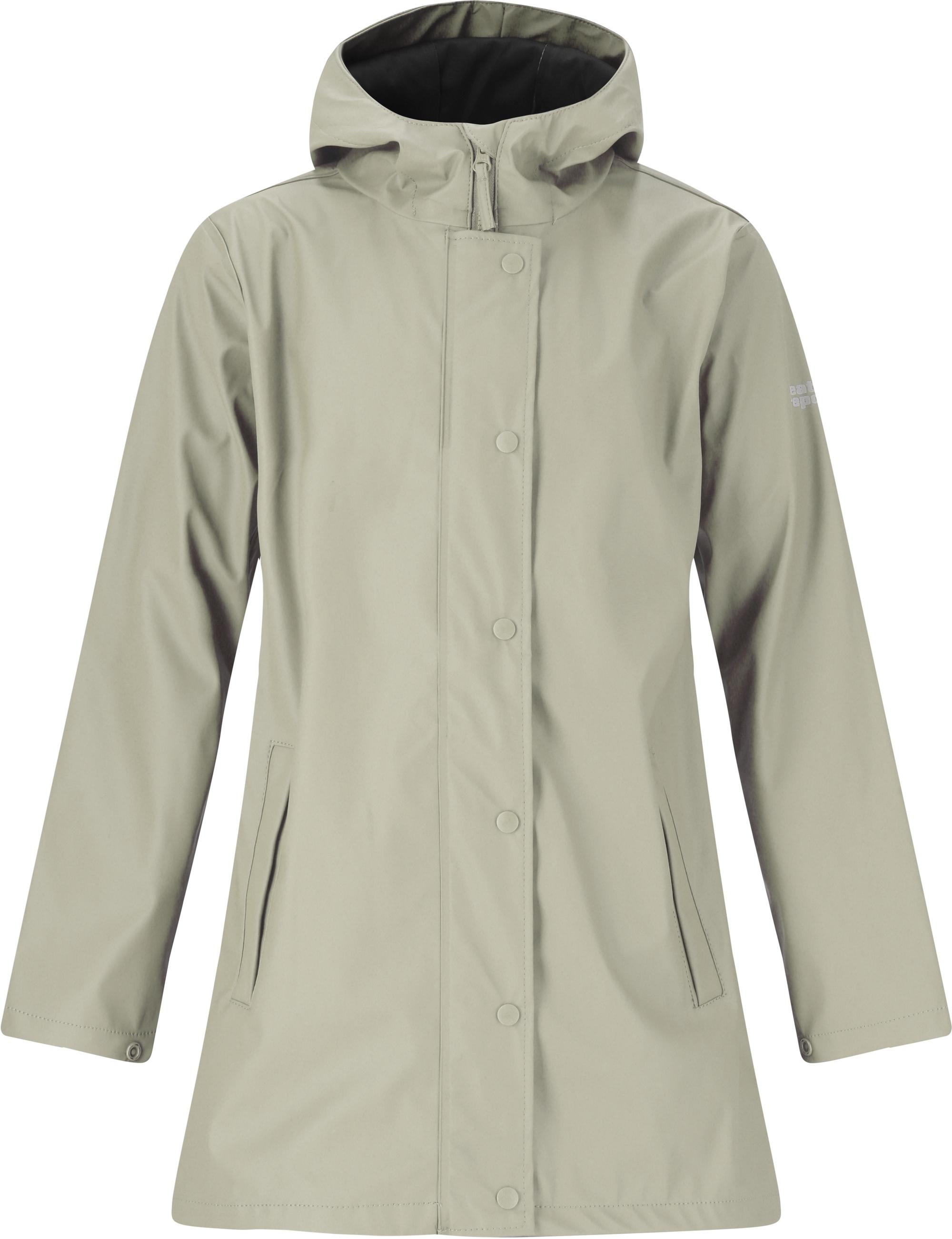 Mit der Regenjacke „Petra jr.“ für Kinder geht es draußen so richtig rund. Das robuste Modell ist extra gemacht für ungemütliche Tage und bietet eine wasserdichte Funktion mit getapten Nähten – so können kleinen Abenteurern weder Pfützen noch Regen etwas anhaben. Die Jacke ist zudem winddicht und besitzt reflektierende Elemente, die eine Sichtbarkeit auch bei Dunkelheit gewährleisten. Verstellbare Ärmelabschlüsse schmiegen sich ohne Zwicken und Drücken an die Handgelenke an und überstehen mit perfektem Sitz jedes Toben und Umhertollen. Die große Kapuze ist über einen Tunnelzug anpassbar und fliegt auch bei starkem Wind nicht vom Kopf. Geschlossen wird „Petra jr.“ über einen Reißverschluss mit Knopfleiste und Blende – so bleibt die Wärme da, wo sie hingehört: am Körper. Die Kordel ist fest fixiert und hat eine Länge von 80cm. Obermaterial: 100% Polyester Die Regenjacke ist nicht gefüttert.