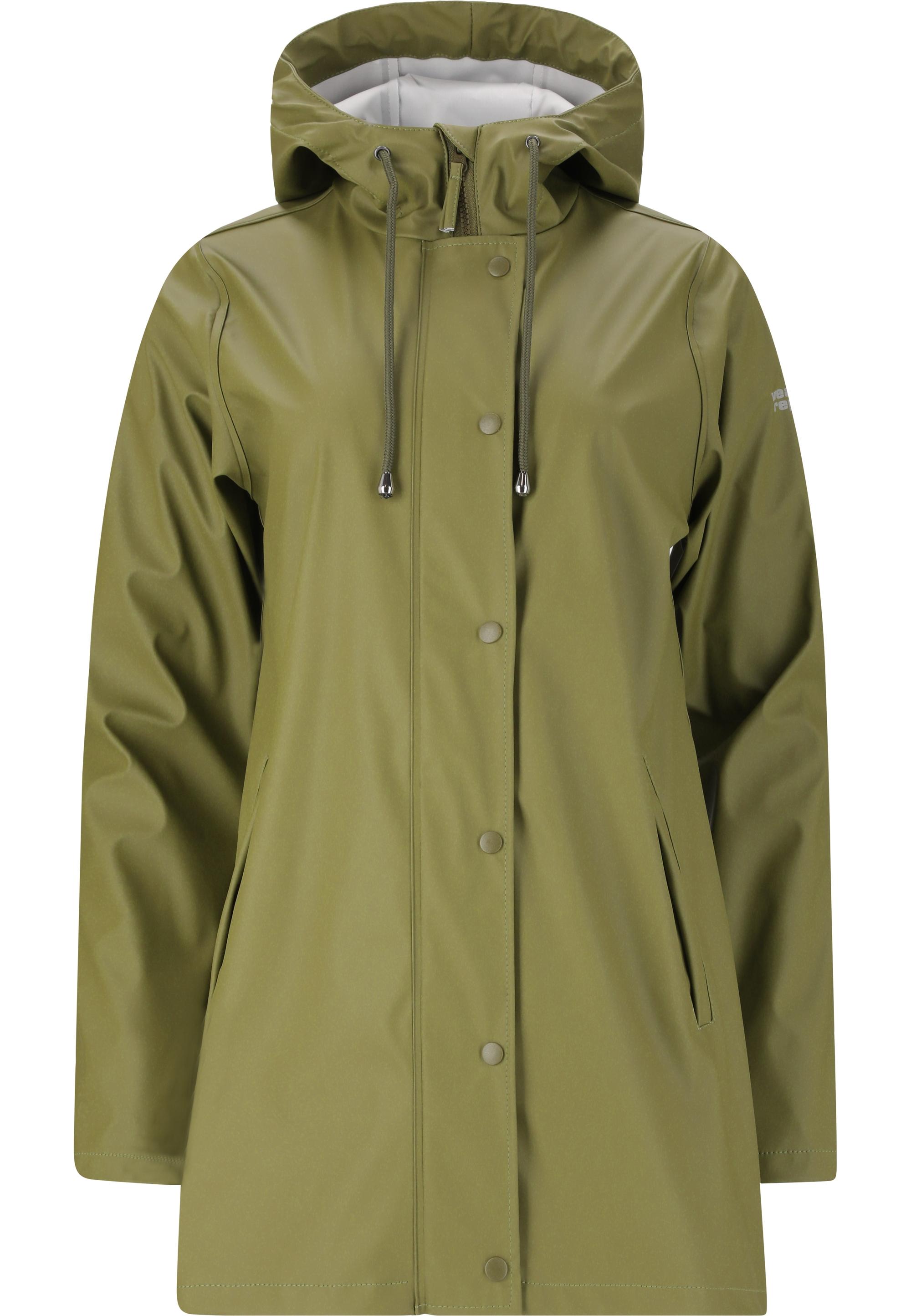 YEAH! Mit dem Regenjacke Petra für Damen von WEATHER REPORT aus Dänemark können Sie den Regenschirm getrost zu Hause lassen. Mit dem wasser- und winddichten Regenmantel aus Polyester mit PU-Beschichtung kannst Du jedem Regen und Wetter trotzen. Die verschweißten Nähte machen ihn zu 100% wind- und wasserdicht. Der komfortable Schnitt gibt maximale Bewegungsfreiheit. Ein weiches Innenfutter sorgt für einen angenehmen Tragekomfort. Die Schirmkapuze hat einen praktischen Kordelzug und auch die Ärmelabschlüsse können bei Bedarf per Druckknopf verengt werden. Der reflektierende Logoprint auf gibt Sicherheit im Dunklen. WEATHER REPORT ist der perfekte Ausstatter für Männer, Frauen und Kinder, die es auch bei nassem und kühlem Wetter nach draußen zieht. Die dänische Lifestyle-Marke stellt robuste Regenkleidung her, die nicht nur langlebig ist, sondern auch mit funktionalen Details überzeugt. So ist man zu jeder Gelegenheit bestens ausgestattet. Ein angemessenes Preis-Leistungsverhältnis gibt es obendrein.