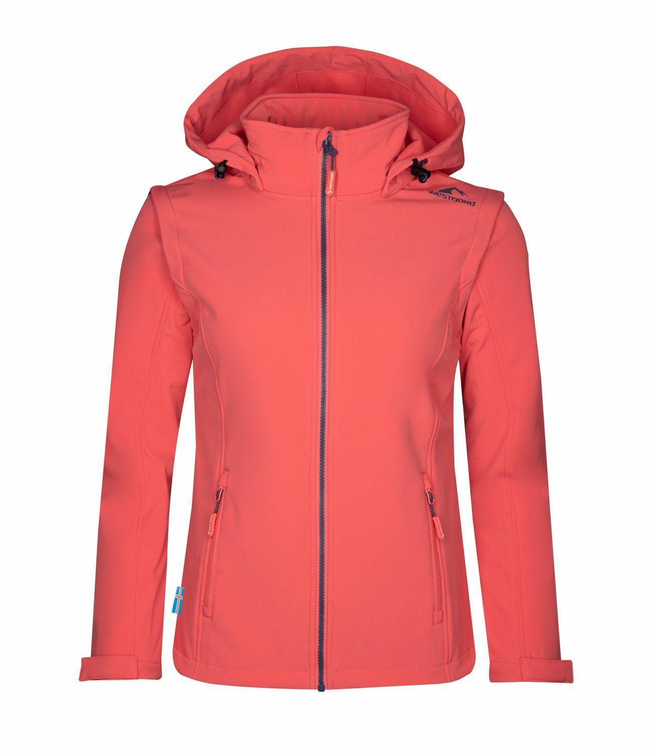 Softshell-Jacke mit kuscheligem Fleece-Innenfutter, abnehmbaren Ärmeln und abnehmbarer Kapuze. Die aus Stretch-Polyester genähte Jacke ist wasserabweisend und winddicht, flexibel-elastisch. Ideal zum Radfahren und für Aktivitäten, bei denen ein hoher Bewegungsfreiraum benötigt wird. Die Ärmel können mit einem Reißverschluss abgezippt werden; dadurch wird die Jacke in eine winddichte Weste umgewandelt. Wassersäule: 7000 mm; MVTR: 1000 g/m2/24h. Oberstoff: 94% Polyester, 6% Elastane; Futter: 100% Polyester