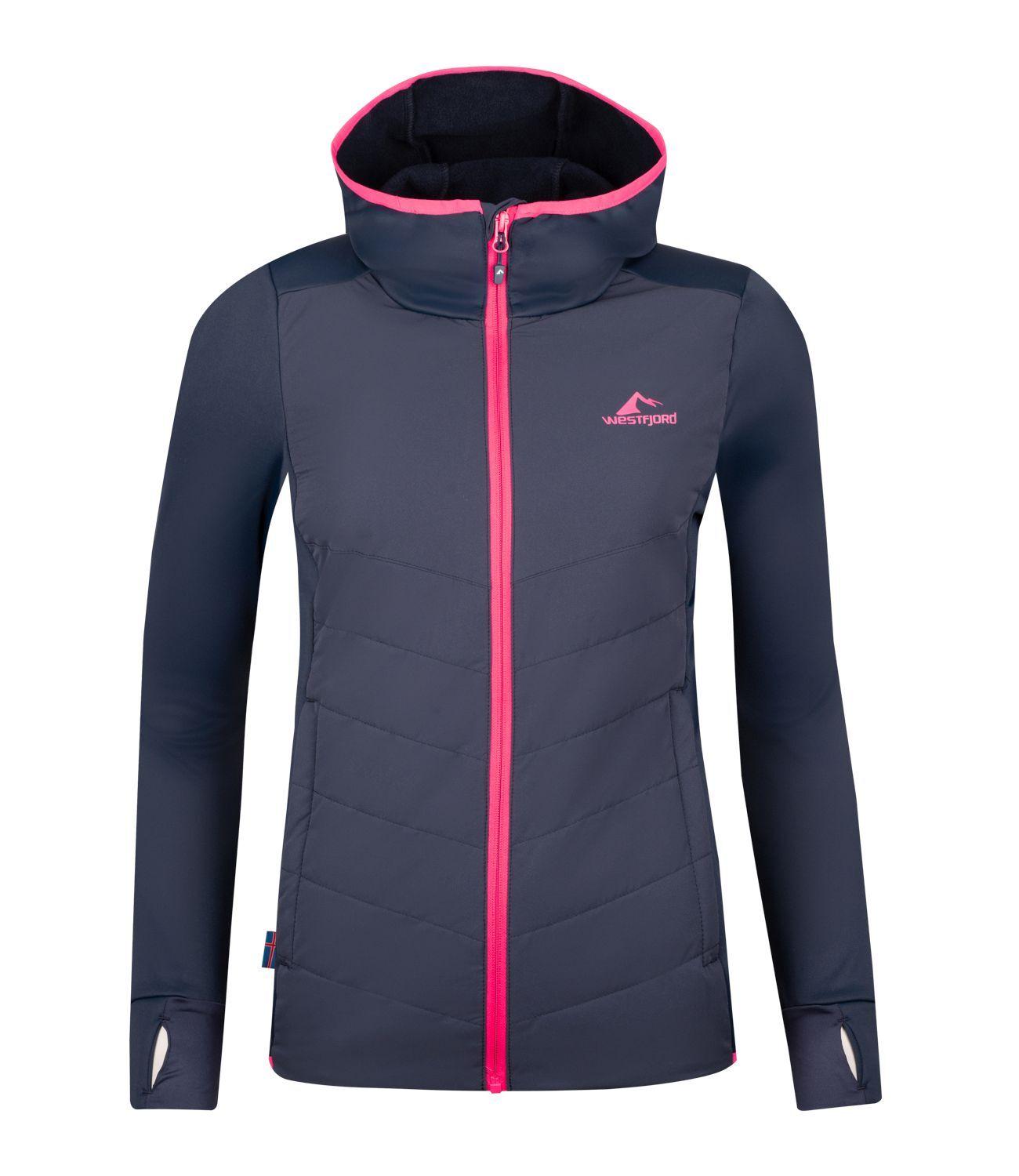 Die WOMEN’S GULFOSS XT JACKET ist eine schlicht-einfarbige Hybridfleecejacke, die die Eigenschaften von zwei Materialien perfekt miteinander verbindet: Ärmel und Rücken sind aus weichem, anschmiegsamem und besonders atmungsaktivem Powerstretch-Fleecestoff gefertigt. Dieser ist außen glatt und innen weich angeraut. Vorne ist die Jacke aus einem mit 60-Gramm-Füllung wattierten Material, das die nötige Wärmeleistung an kühleren Tagen garantiert – und zwar genau an den Stellen, wo sie gebraucht wird, wenn zum Beispiel der Wind beim Joggen, Radfahren oder anderen Aktivitäten von vorne kommt. Eine feste Kapuze, ebenfalls aus Fleecestoff mit kuscheliger Innenseite, wärmt bei Bedarf den Kopf. Zwei seitliche Eingrifftaschen mit Reißverschluss fassen zuverlässig alle Kleinigkeiten, die mit müssen. Material: 100 % Polyester (Powerstretch-Fleece), Fleecestärke: 200 g/m²; Material wattierter Einsatz: 100 % Polyester; Füllung: 100 % Polyester (60 g/m²); Futter: 100 % Polyester