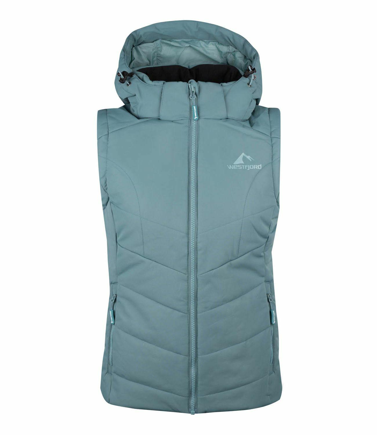 Die mit Polyfasern gefütterte Damen-Weste ist warm, winddicht und wasserabweisend – ideal für Aktivitäten im Frühjahr/Herbst bzw. in den Bergen oder an der See, wo das Wetter schnell umschlagen kann. Die Weste sieht aus wie eine Daunenweste, hat ähnliche Wärmeeigenschaften, ist aber weniger nässe- und schmutzempfindlich: Die wasserabweisende Mikrofaser wärmt im Gegensatz zur Daune auch bei Nässe und kann jederzeit problemlos in der Waschmaschine gewaschen werden. Der Außenstoff besteht aus wasserdichtem, atmungsaktiven Polyestergewebe (Wassersäule 6000mm; Atmungsaktivität (MVTR): 6000g/m2/24h). Die gefütterte Kapuze kann abgenommen werden, die Armöffnungen sind zusätzlich gegen Wind geschützt. Material: 100 % Polyester, atmungsaktiv.