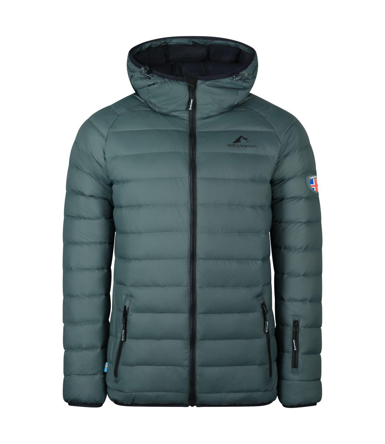 Extrem leichte, wasserabweisende, mit 90/10er Entendaune gefütterte, Ski- und Winterjacke. Die Jacke ist aus extrem leichtgewichtigem wasserdichten Polyamid-Gewebe mit einer 6000er Wassersäule genäht und dadurch winddicht und wasserabweisend. Außen-Material: 100% Polyamid; Füllung: Entendaune. Wasserabweisend und atmungsaktiv. Windddicht. 2 Hüfttaschen, eine Ärmeltasche. Gewicht: 480g.
