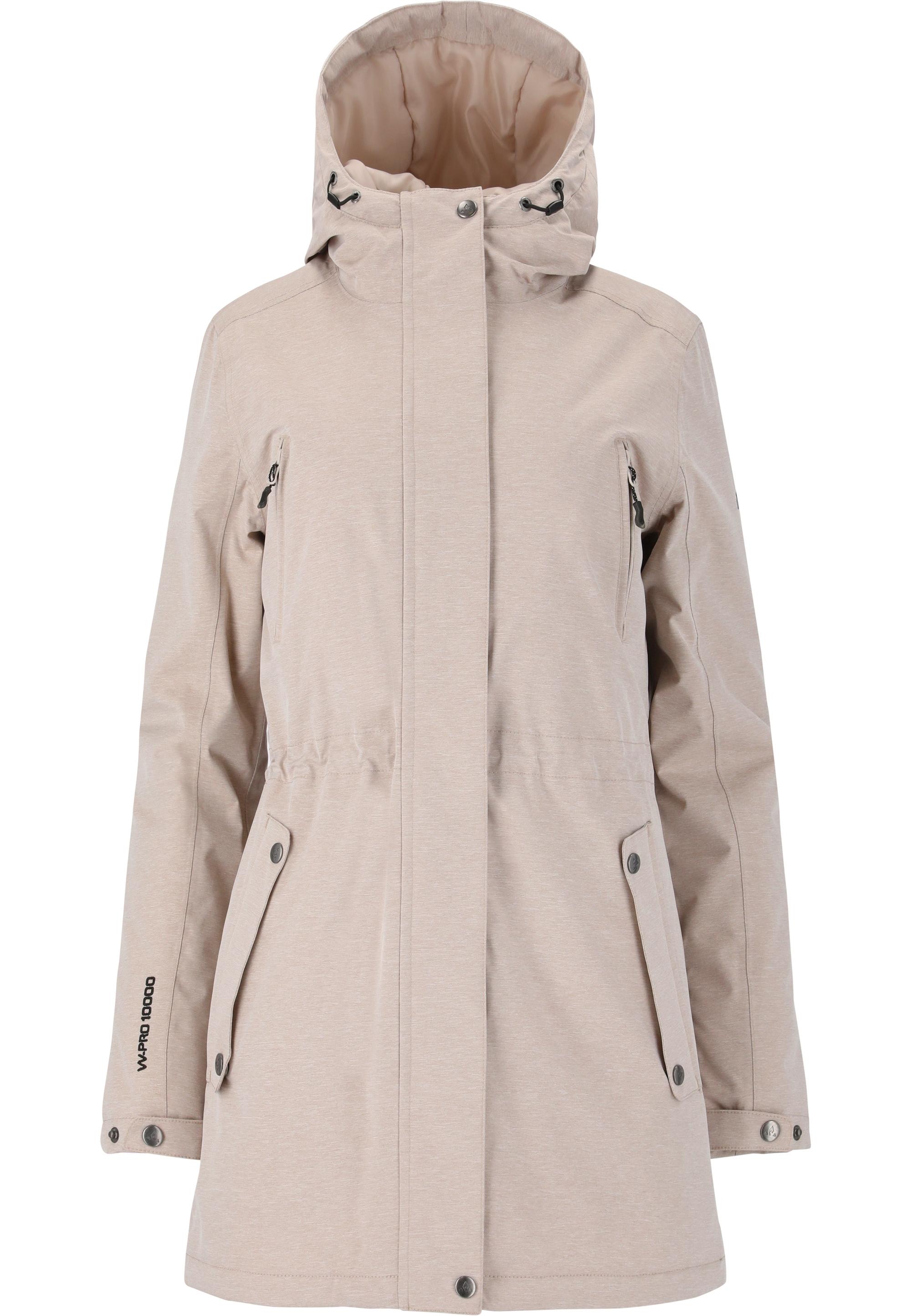 Der Parka BASTA W Long W-PRO 10000 für Damen von WHISTLER aus Dänemark ist ein toller Begleiter bei Deinen Outdooraktivitäten und im Alltag. Der Softshellparka kommt dezent und sportlich im typisch dänischen Design und ist ideal für die Übergangszeit und für verregnete Tage geeignet. Mit der 10.000er Wassersäule ausgestattet wird mit der TPU-Membran garantiert nichts nass. Die Nähte sind zusätzlich allesamt verschweißt. Das 3-Lagen-System ist hervorragend atmungsaktiv, wärmeausgleichend sowie winddicht. Du kannst die Jacke sowohl an wärmeren als auch an kühleren Regentagen tragen, ohne zu schwitzen oder zu frieren. Passe dafür einfach die untere Kleidungsschicht entsprechend an. Das leichte Funktionsmaterial und die hervorragende Atmungsaktivität machen die Jacke besonders trageangenehm. Der hochschließende Stehkragen und die verstellbare Schirmkapuze bieten bei Wind und Wetter einen richtig tollen Schutz – ein top Preis-Leistungsverhältnis gibt es obendrein!