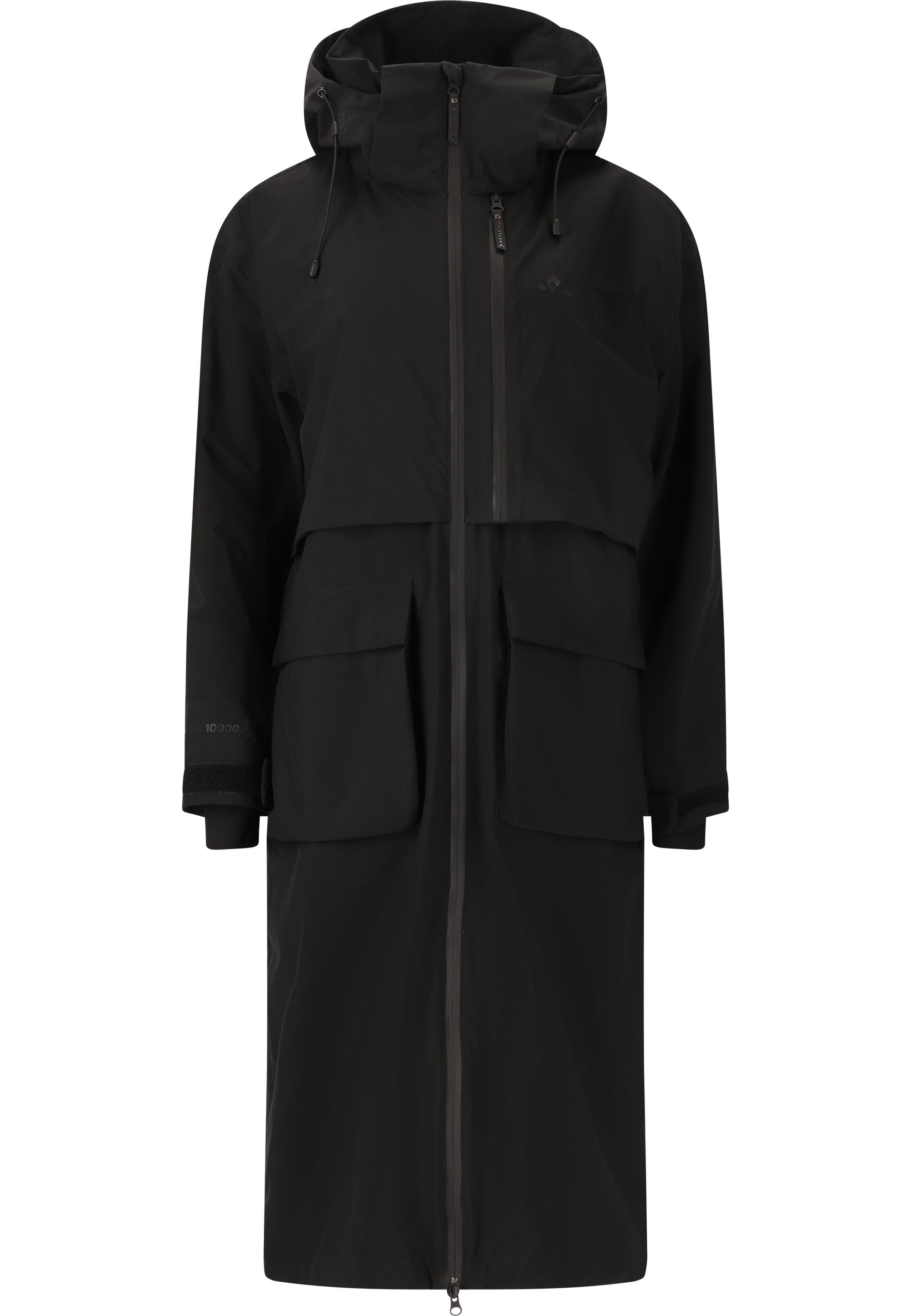 Mit dem Regenmantel "Bombai" für Damen von WHISTLER bist du an Regentagen optimal ausgerüstet und modisch unterwegs. Der Parka hat einen besonders langen Schnitt, wodurch er dich großflächig vor den Elementen schützt. Er ist winddicht, wasserdicht mit 10.000 mm Wassersäule und mit einer wasserabweisenden Membran ausgestattet. Die Kapuze schützt deinen Kopf und lässt sich per Kordelzug einstellen. Auch die Ärmel und der untere Saum lassen sich verstellen und so optimal abdichten. Die Jacke ist aus 100% Polyester hergestellt und dank atmungsaktiver Funktion besonders komfortabel. In den praktischen Seitentaschen sowie einer Brusttasche mit Reißverschluss kannst du wichtige Gegenstände wie z.B. dein Handy zuverlässig vertsauen. Das Tüpfchen auf dem i bildet der angesagte und geradlinige skandinavische Style der Jacke, der jedes Regentag-Outfit rettet!