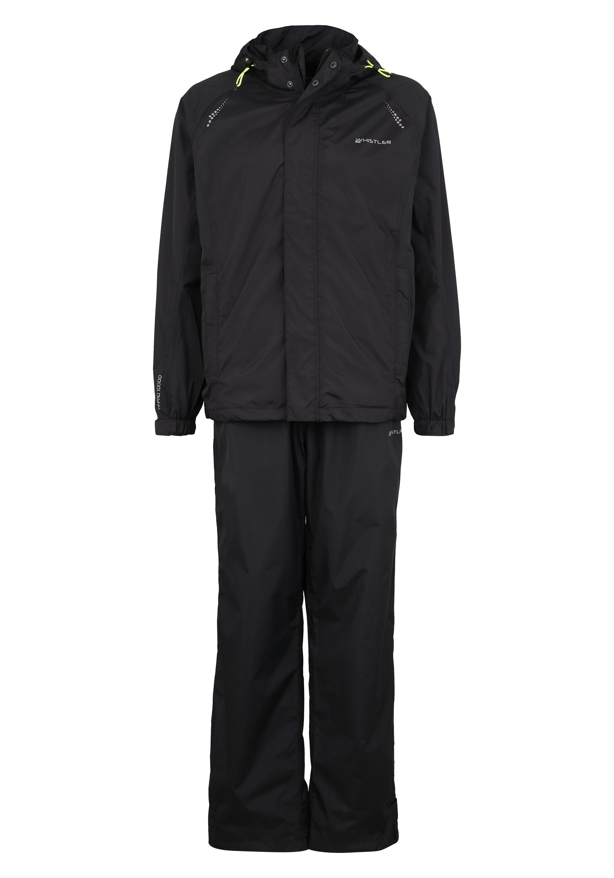 Nach dem Motto „Es gibt kein schlechtes Wetter, sondern nur die falsche Bekleidung“ wurde dieses Regen-Set entwickelt. Mit dem atmungsaktiven Modell Brisbane AWG Set W-PRO 10.000 von WHISTLER aus Dänemark kannst Du jedem Regen und Wetter trotzen. Das Regen-Set kann auch als Schutz schnell über die normale Kleidung angezogen werden. Das angenehme Wabenmesh-Innenfutter und die Atmungsaktivität machen Jacke und Hose besonders angenehm – auch bei sportlichen Outdooraktivitäten. Der hochabschließende Stehkragen bietet bei Wind und Wetter einen tollen Schutz. Sehr praktisch ist auch die verstellbare und abnehmbare Kapuze. Sie lässt sich mit einem Reißverschluss schnell und einfach anbringen und abnehmen. Das Regen-Set ist mit einer 10.000er Wassersäule ausgestattet. Zudem sind alle Nähte samt Tapes verschweißt und dadurch absolut wasserdicht. Das 3-Lagen-System ist hervorragend atmungsaktiv, wärmeausgleichend sowie winddicht. Du kannst das Set sowohl an wärmeren als auch an kühleren Regentagen tragen, ohne zu schwitzen oder zu frieren. Kleine, reflektierende Elemente geben Dir mehr Sicherheit bei Dämmerung und Dunkelheit. Bei der Jacke lassen sich die Taschen mit hochwertigen Reißverschlüssen öffnen und schließen. Dies ist ein top Funktions-Regen-Set, das Du bei schlechtem Wetter nicht verpassen solltest!