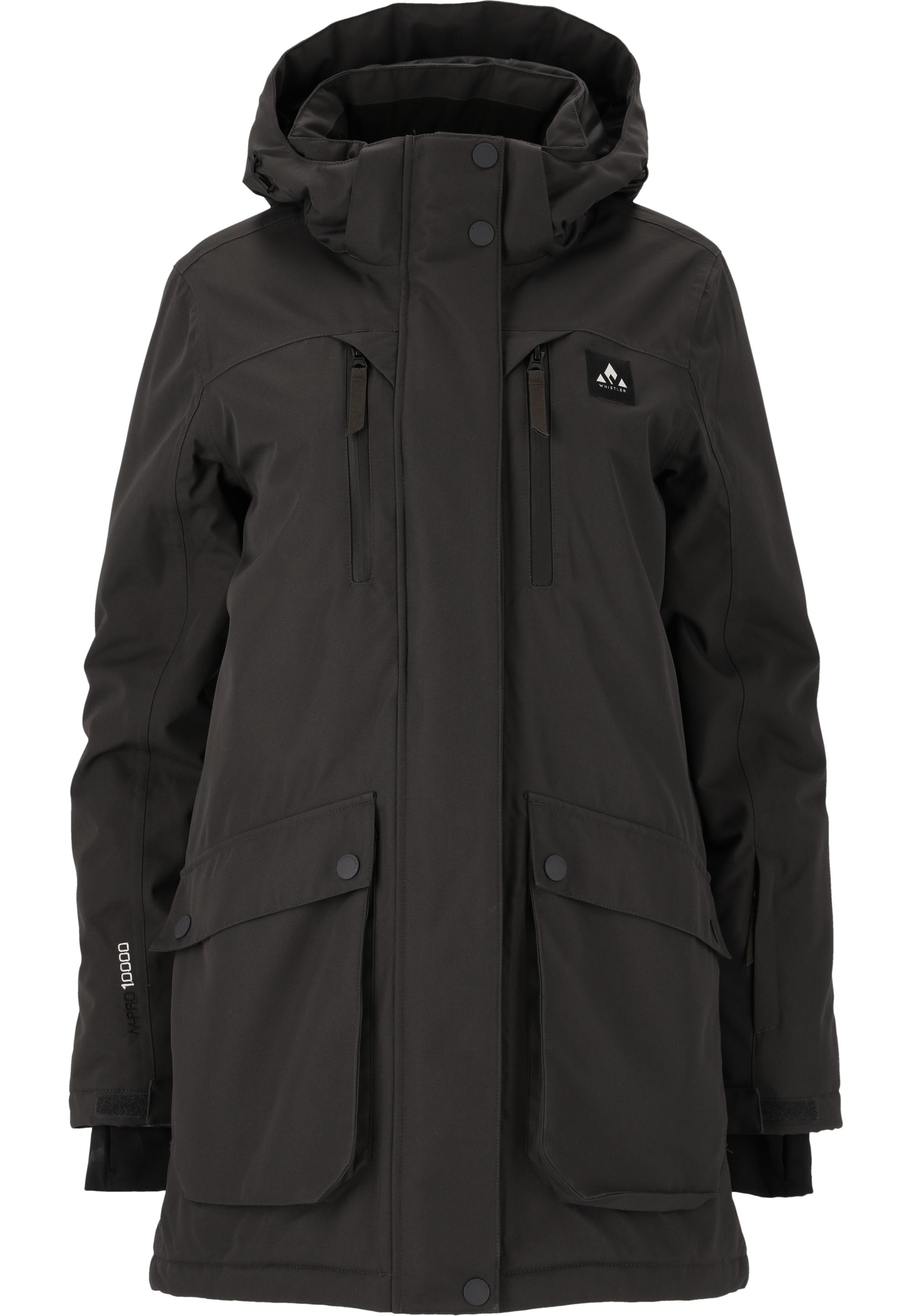 Cargo ist eine erstklassige Skijacke aus dem Hause WHISTLER. Sie wurde für Damen entworfen und ist eine ideale Wahl für Wintersport und Urban Outdoor. Optisch zeigt sie sich in zeitloser Unifarbe und ist mit praktischen Brusttaschen, Eingriffstaschen, Ärmeltaschen und Reißverschlusstaschen ausgestattet. Der Verschluss erfolgt per verdecktem Reißverschluss. Bei der Produktion der Skijacke wurde äußerlich Polyester verwendet. Die Jacke hat einen verstellbaren Saum und eine verstellbare, abnehmbare Kapuze. Sie besitzt einen Kinnschutz, getapte Nähte und einen Tunnelzug im Saum. Sie ist atmungsaktiv, wasserdicht und winddicht.