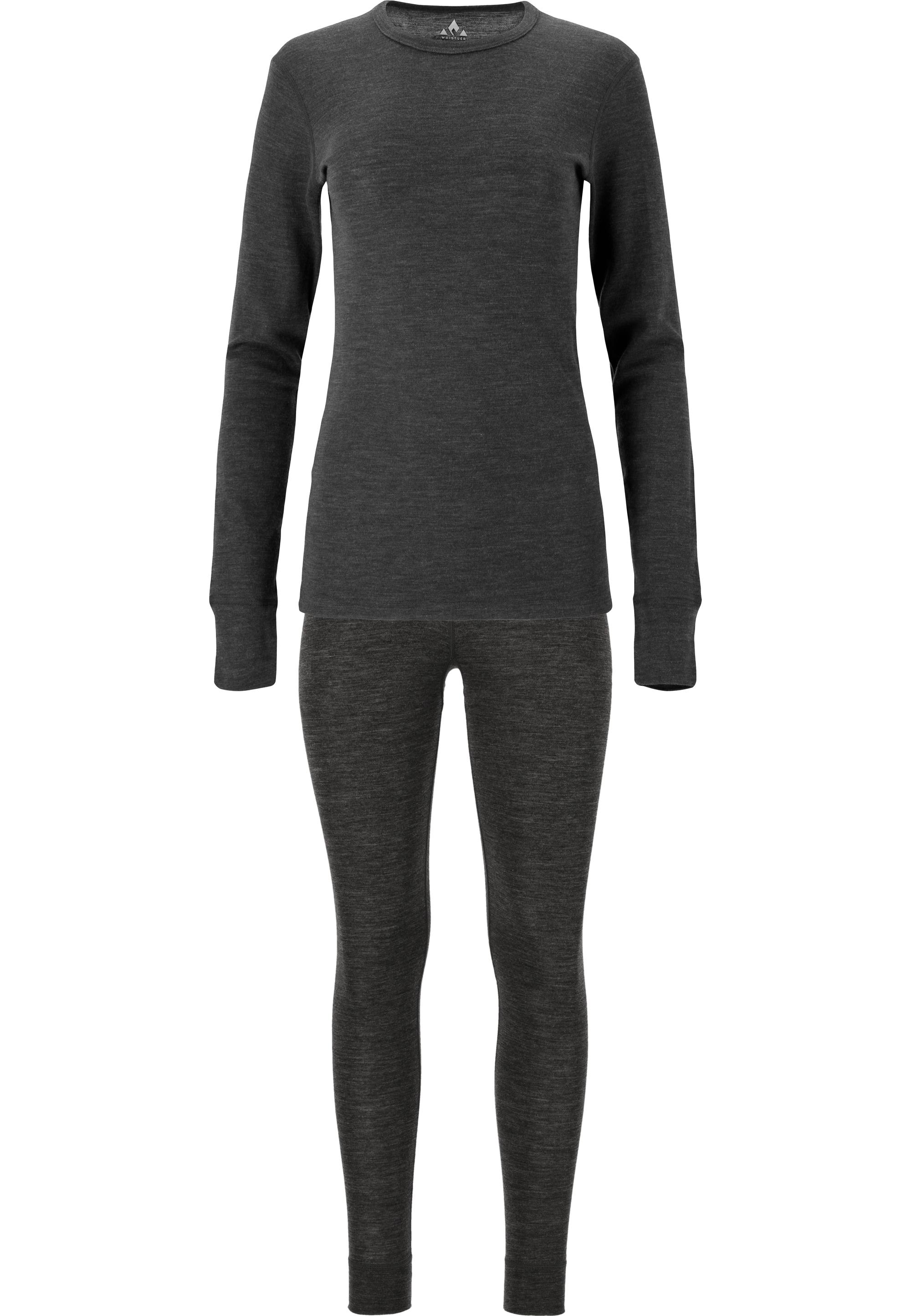 Das "Cerro" Baselayerset von WHISTLER für Damen vereint die Funktionalität von Power-Naturmaterialien mit einem hochwertigen und komfortablen Tragegefühl. Das lange Unterhemd und die Funktionsunterhose aus mulesingfreier Merinowolle und Lyocell-Fasern wirken auf natürliche Weise atmungsaktiv, feuchtigkeitsregulierend, geruchshemmend und antibakteriell – und kommen obendrein mit einer unwiderstehlich weichen Textur und bequemen Passform daher, dank der sie sich ideal als Basisschicht beim Wintersport, Outdoor oder Laufen eignen.