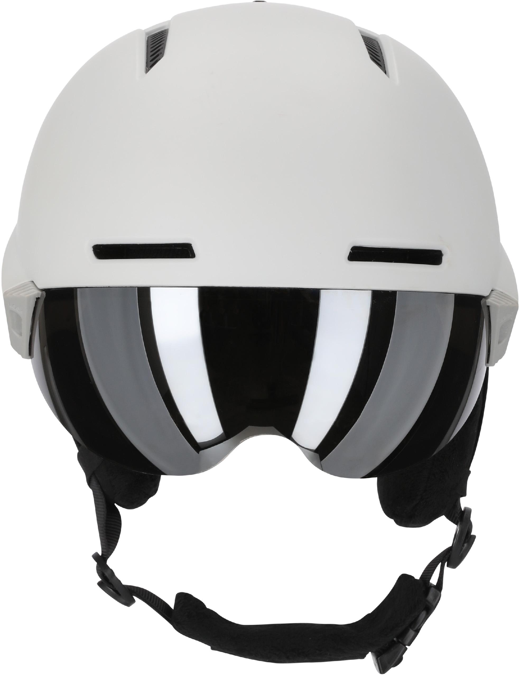 Sei sicher auf der Piste unterwegs mit dem "Coviglia" Skihelm von WHISTLER. Der Helm ist aus einer robusten doppelten Polycarbonat/EPS In-Mould Konstruktion gefertigt und dämpft so Stöße ab, während er dennoch leichtgewichtig bleibt. Das eingebaute Kategorie-2-Visier mit silberner Verspiegelung (19.5% Lichtdurchlässigkeit) gibt dir eine optimale Sicht an sonnigen Tagen. Damit der Helm zuverlässig sitzt, kannst du ihn per Drehknopf am Hinterkopf optimal einstellen. Die FidLock-Schnalle ist einfach zu bedienen, sodass der Helm im Nu an- und ausgezogen ist. Die Ohrenschützer lassen sich abnehmen und die bequeme Textilinnenauskleidung ist waschbar. Ein praktisches Belüftungsystem mit 8 Belüftungslöchern sorgt für ein stets frisches und trockenes Tragegefühl. Der Helm stimmt mit dem EN 1077:2007 Sicherheitsstandard überein.Egal, ob Mann, Frau oder Kind, bei WHISTLER wird jeder fündig. Die stylische Marke aus Dänemark hat sich auf vielseitige Outdoor-Bekleidung und duchdachtes Outdoor-Equipment spezialisiert. Die Devise lautet: Schönes Design und funktionelle Ausstattung in großartiger Qualität müssen nicht teuer sein.