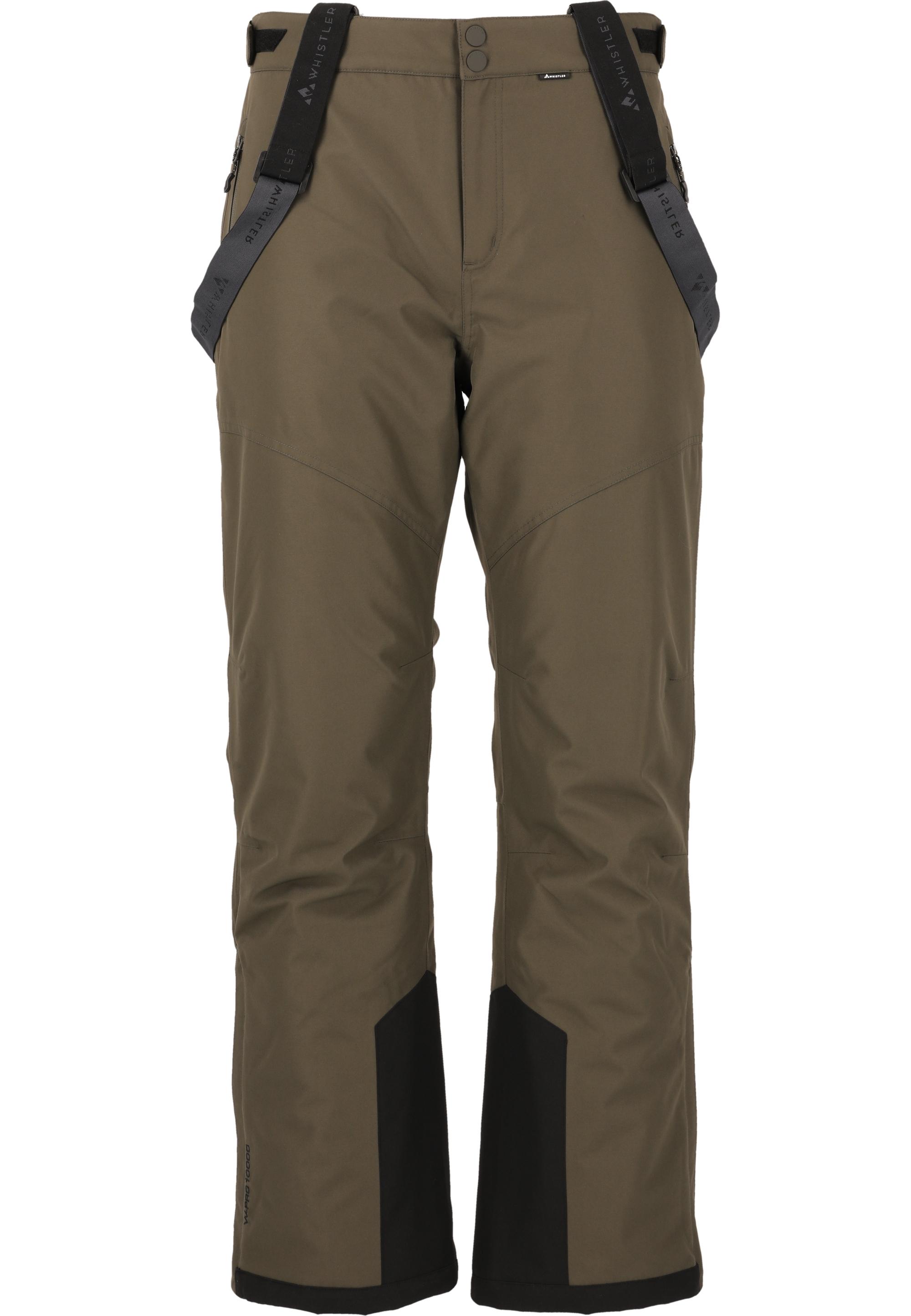 Die "Drizzle" Skihose für Herren sorgt mit ihren funktionalen Eigenschaften dafür, dass du deine Wintersportabenteuer in vollen Zügen genießen kannst. Die Hose ist wärmend und winddicht mit weichem Kunsfasermaterial gepolstert und hält Nässe dank ihrer hochgradig wasserdichten und wasserabweisenden Qualität fern. Sie besitzt getapte Nähte und eine wasserabweisende Membran und hält einer hohen Wassersäule von 10.000 mm stand. Zusätzlichen Schutz erhältst du dank dem praktischen Schneefang. Besonders strapazierfähig ist die Skihose dank verstärkten Stellen, und der Sitz der Hose wird dank einstellbaren Beinabschlüssen, einer justierbaren Taille sowie praktischen Hosenträgern perfektioniert! Egal, ob Mann, Frau oder Kind, bei WHISTLER wird jeder fündig. Die stylische Marke aus Dänemark hat sich auf vielseitige Outdoor-Bekleidung und duchdachtes Outdoor-Equipment spezialisiert. Die Devise lautet: Schönes Design und funktionelle Ausstattung in großartiger Qualität müssen nicht teuer sein.