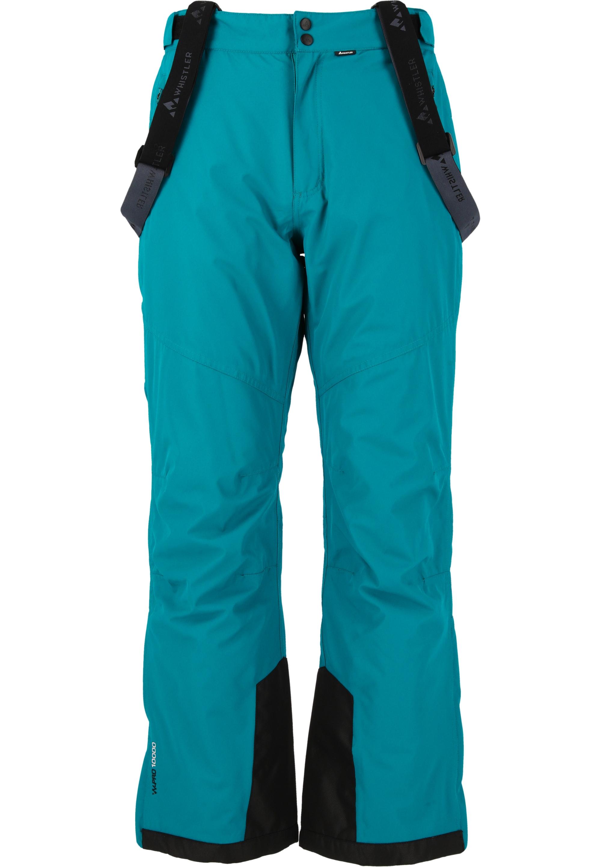 Diese Skihose für Herren von WHISTLER bringt jede Menge praktische Features mit sich. Die wasserfeste Skihose hält einem Wasserdruck von 10’000 mm Wassersäule stand und ist super strapazierfähig, sodass du perfekt für Tage auf der Piste gekleidet bist. Die W-Pro-Membran, mit der die Skihose beschichtet ist, ist winddicht, wasserdicht und natürlich wasserabweisend! Extra Robustheit gibt’s dank verstärkten Elementen im Bereich der Skischuhe! Die warme Skihose weist ein leichtes isolierendes Polster auf, sodass du beim Wintersport nicht frierst. Damit kein Schnee in die Skihose dringt, ist sie mit Schneefängen ausgestattet, die die Skihose optimal abdichten. Für den perfekten Halt sorgen die verstell- und abnehmbaren Hosenträger sowie der justierbare Bund mit Klettverschluss. Egal, ob Mann, Frau oder Kind, bei WHISTLER wird jeder fündig. Die stylische Marke aus Dänemark hat sich auf vielseitige Outdoor-Bekleidung und duchdachtes Outdoor-Equipment spezialisiert. Die Devise lautet: Schönes Design und funktionelle Ausstattung in großartiger Qualität müssen nicht teuer sein.