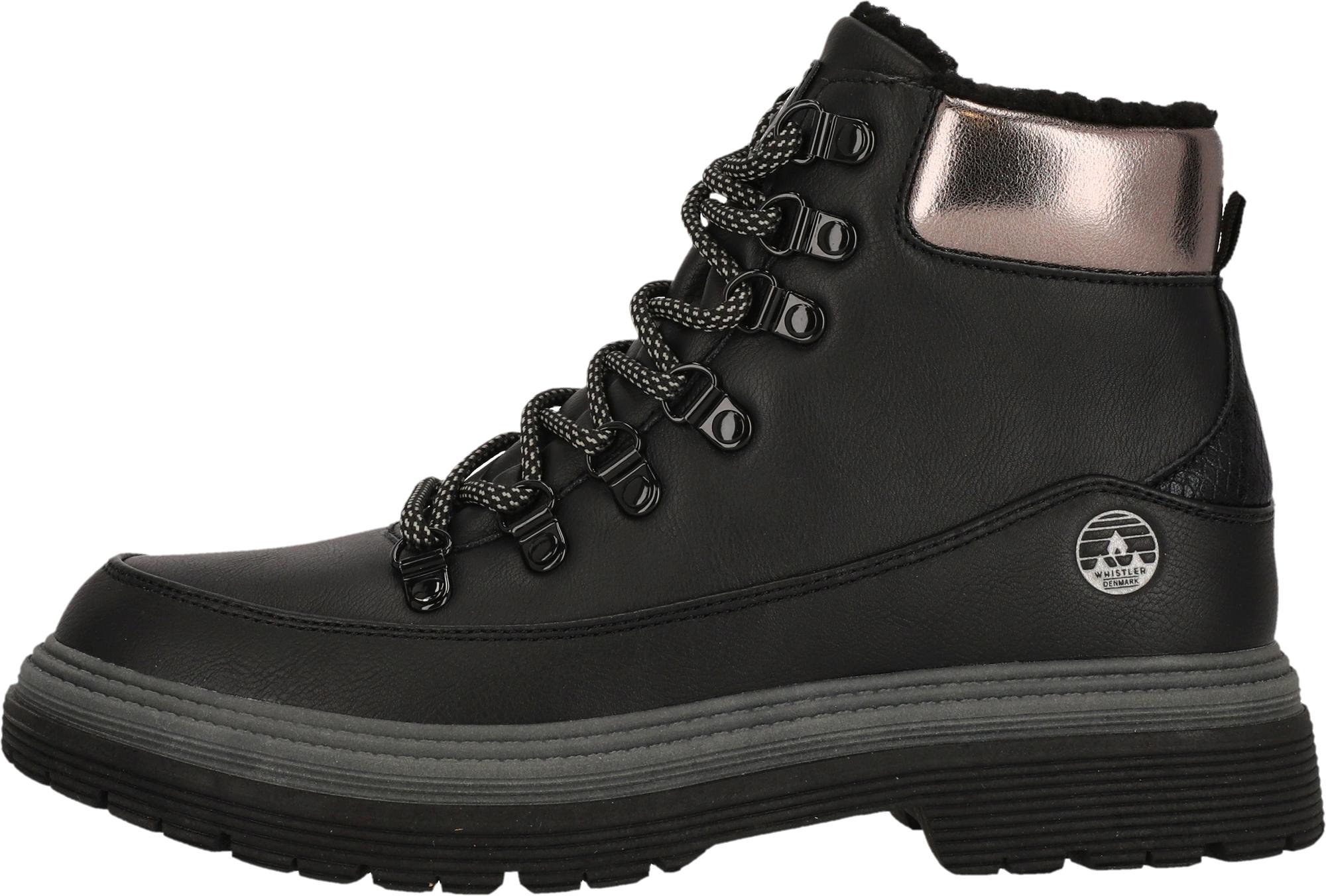 Der Stiefel "Gianni" für Damen von WHISTLER vereint Retro-Design mit einem trendy Touch! Sein Obermaterial besteht aus Polyurethan und Textil mit stylischen, glänzenden Akzenten, einer Decksohle aus weichem Textil und EVA und einer robusten Außensohle aus thermoplastischem Gummi. Das Allwetterprofil sorgt dafür, dass du stets sicher auftrittst. Die Innensohle ist bequem und atmungsaktiv und der Fersenbereich ist zusätzlich gepolstert. Dank subtilen Reißverschlüssen ist der Schuh besonders einfach an- und auszuziehen.