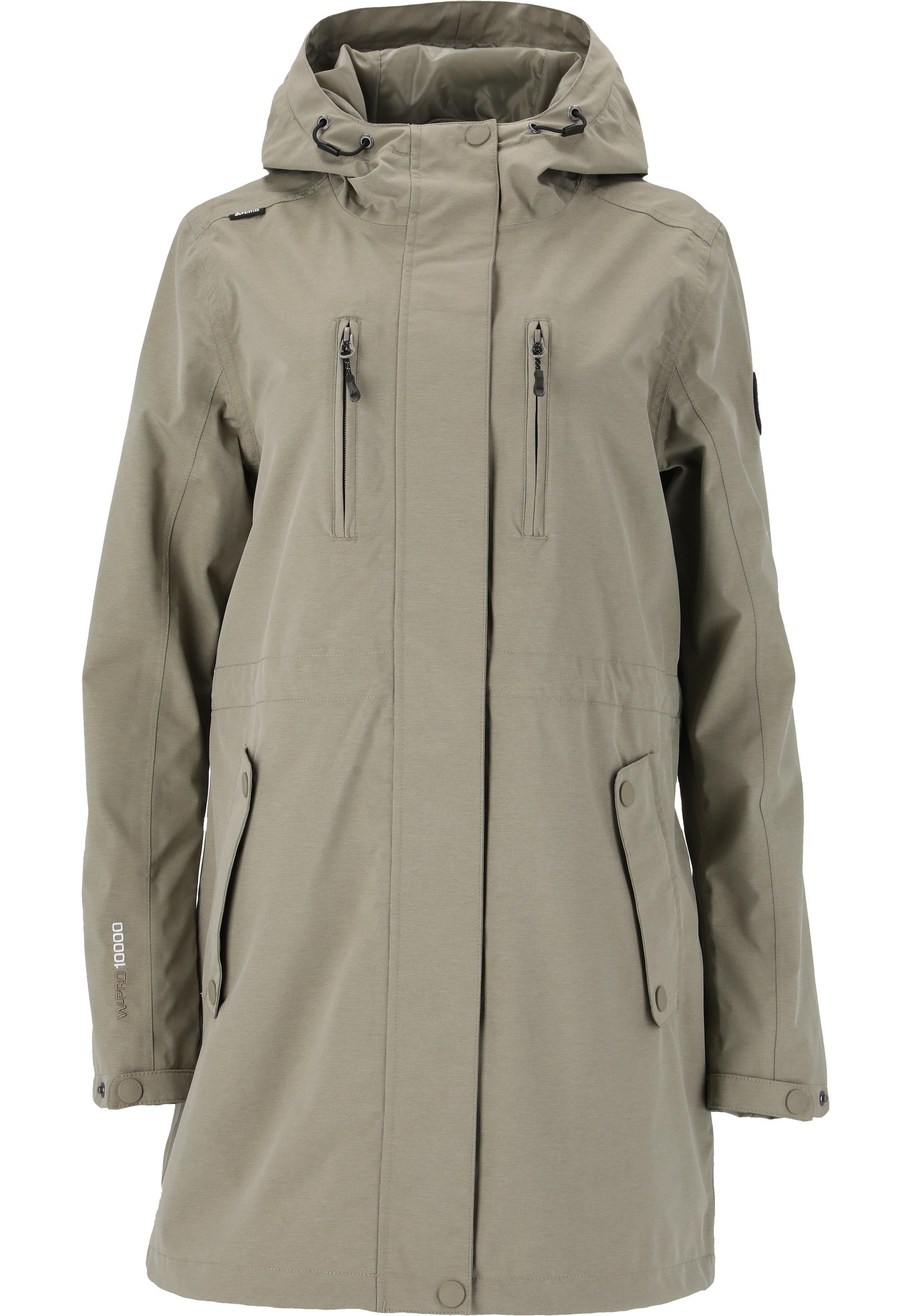 Die hochwertige Regenjacke "Leia V2" für Damen von Whistler macht Regentage besser, denn sie bietet dir einen top Komfort! Das Shell-Material aus Polyester ist in Verbindung mit der TPU-Membran wasser- und winddicht sowie atmungsaktiv. Die Nähte der Jacke sind zusätzlich alle wasserdicht verschweißt. So bleibt alles sicher angenehm trocken. Der langlebige und praktische YKK-Markenreißverschluss mit 2-Wege-Funktion, die Front- und Brusttaschen, die verstellbare Kapuze, ein hoher Kragen, die Klettverschlüsse an den Ärmeln und ein Kinnschutz am Reißverschluss runden das stimmige Paket zur perfekten Regenjacke ab – und das alles im hochwertigen Design aus Dänemark!