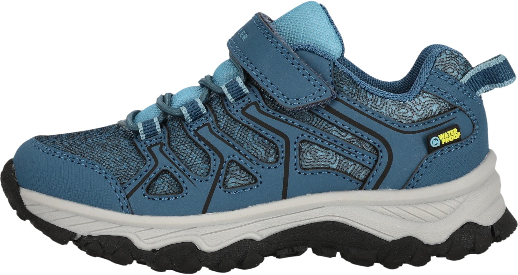 Der Schuh "Wony" ist robust, strapazierfähig, und darüber hinaus auch noch wasserdicht – ideal für spannende Tage in der Natur! Der Schuh ist mit einem leichtgewichtigen Obermaterial sowie einer robusten und stoßdämpfenden Sohle angefertigt. Damit aktive Kids auch bei viel Bewegung komfortabel unterwegs sind, ist der Schuh atmungsaktiv und im Fersenbereich zusätzlich gepolstert. Verstärkte Elemente an der Fußspitze bieten noch mehr Schutz. Das Allwetterprofil sorgt für ein sicheres Auftreten und der smarte Klettverschluss erlaubt ein einfaches An- und Ausziehen. Kinderfreundlich und stylisch, ist dieser Schuh ein Must-Have für Outdooraktivitäten mit Kindern, oder aber auch im Alltag!