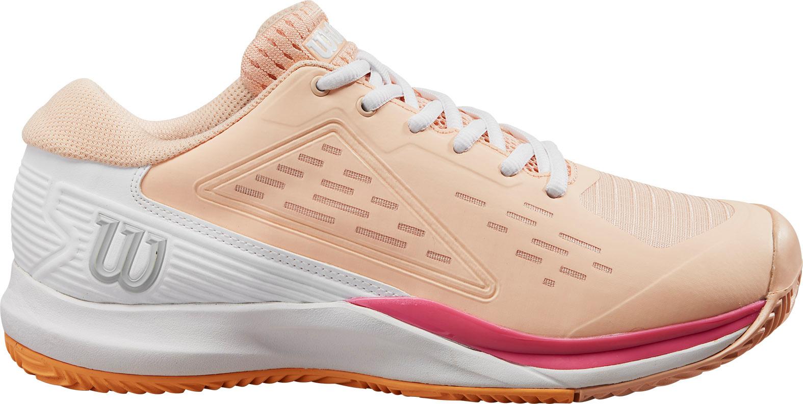Tennisschuhe für den Gebrauch auf Sandplätzen; mit minimalistisch geschichtetem Sensifeel-Obermaterial; komfortabel und stützend; Gummi-Pad an der Fußinnenseite für zusätzliche Strapazierfähigkeit; großzügige 2E-Passform für breitere Füße; frauenspezifische Konstruktion mit asymmetrischer, verlängerter TPU-Fersenverstärkung an der Innenseite; stabilisierendes 4D Support Chassis begrenzt Supination und Torsion; R-DST+ Zwischensohle wirkt dämpfend und energierückführend; abriebfeste Außensohle aus Duralast-Gummimischung für optimale Traktion; Sprengung: 9 mm.