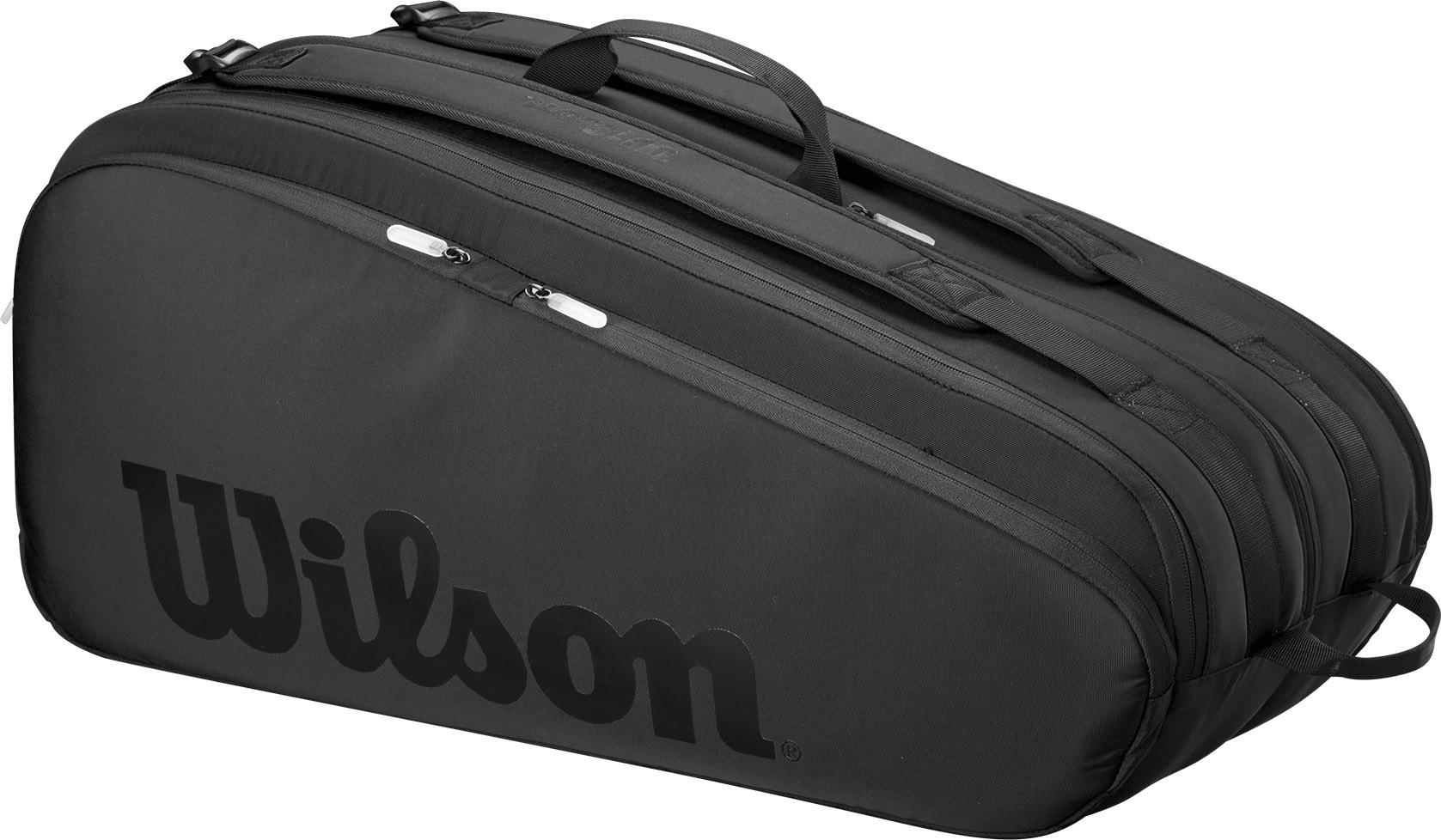 Tennistasche mit 2 Hauptfächern für bis zu 12 Schläger; Thermoguard-Futter schützt die Ausrüstung vor extremen Temperaturen; Außentaschen für weitere Trainingsausrüstung; Innenfach für Schuhe; mit gepolsterten Rucksackgurten und Tragegriff an der Oberseite; Maße (L/B/H): ca. 72,5 x 29 x 32 cm; aus Polyester.