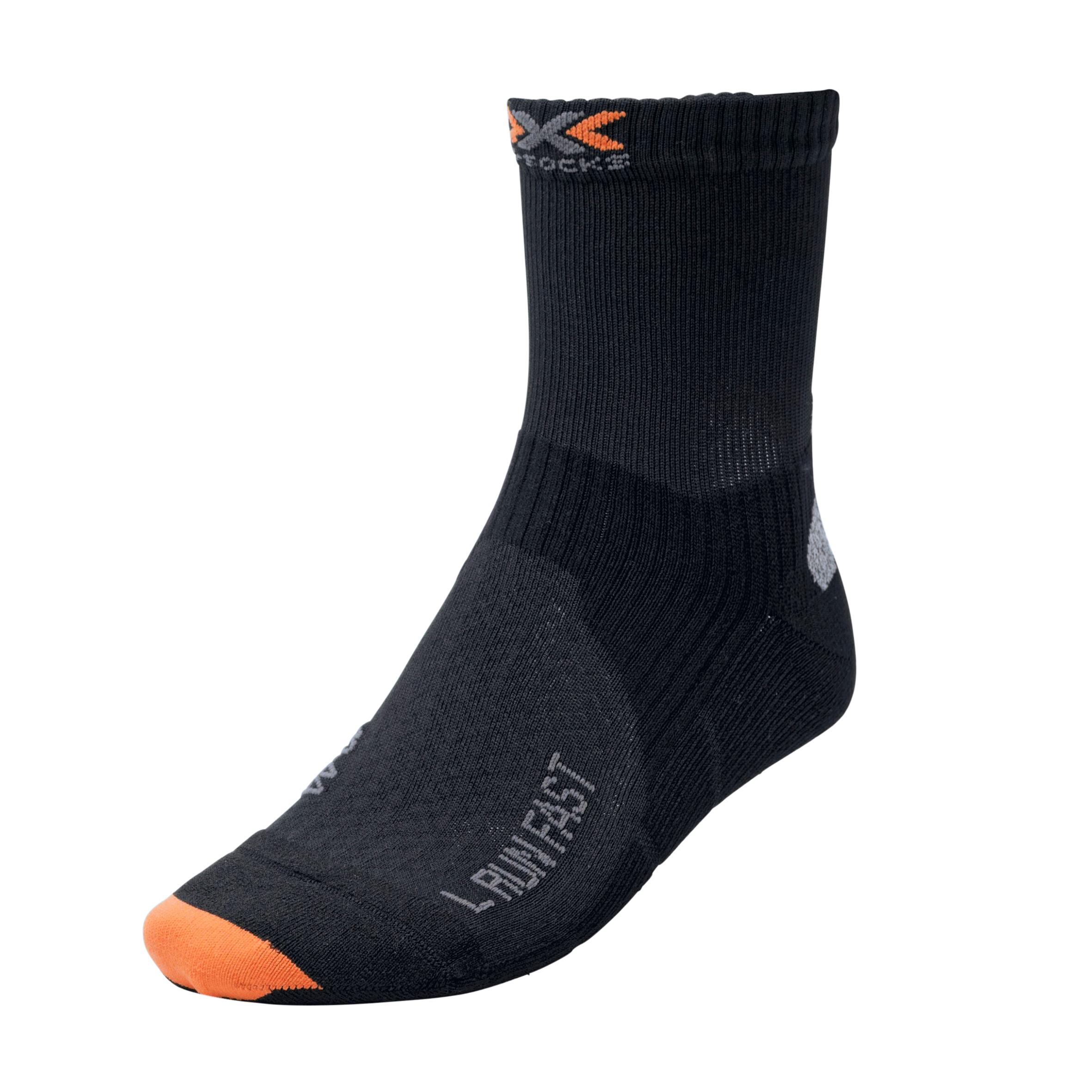 X-SOCKS RUN FAST. Hoch funktionelle Laufsocke mit links/rechts Fußbett bietet Komfort und unterstützt dank Dämpfung, Kompression und verstärkten Belastungszonen; mit atmungsaktiven Bereiche, Rippbündchen und Logostick; 57% Polyester, 27% Polyamid, 12% Polypropylen, 4% Elastan; Gr. 1 (35-38), 2 (39-42), Gr. 3 (42-44), Gr. 4 (42-44).