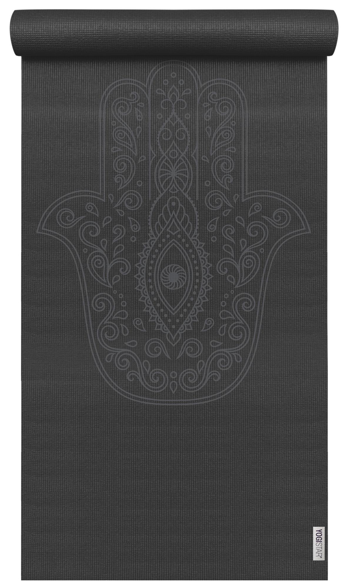 Die "Hand der Fatima" wird im Nahen Osten und in der Maghreb-Region seit alten Zeiten als Schutzsymbol verwendet. Hol sie dir auf deine Yogamatte - mit dieser yogimat basic aus der art collection! Keep it simple! Einfach, aber gut: Die yogimat basic ist der Klassiker unter den Yogamatten das ebenso zuverlässige wie beliebte Standardmodell für alle, die eine preisgünstige Yogamatte suchen. Die yogimat basic wird deutschlandweit und international in zahlreichen Yogastudios verwendet und ist eine bewährte Einsteigermatte. Die Struktur der Yogamatte yogimat basic wurde über die Jahre stets verfeinert und verbessert. Auf beiden Seiten findet sich die gleiche rutschfeste Oberfläche, die Händen und Füßen sicheren Halt gibt, so dass du alle Asanas damit praktizieren kannst egal, für welchen Yogastil du dich entschieden hast. Neben der Rutschfestigkeit ist natürlich der Faktor Hygiene wichtig gerade für Studios ein entscheidendes Thema! Auch wer viel mit seiner Yogamatte unterwegs ist, legt wahrscheinlich Wert auf eine Matte, die man oft und ohne Umstände waschen kann. Die Yogamatte yogimat basic lässt sich unkompliziert reinigen und kann bei Bedarf auch problemlos in der Waschmaschine gewaschen werden. Die yogimat basic ist eine widerstandsfähige Matte, die sich rollen und falten lässt und mit ihren Abmessungen gängige Standardmaße bietet. Maße: 183 cm x 61 cm x 4 mm Gewicht: ca. 1,25 kg