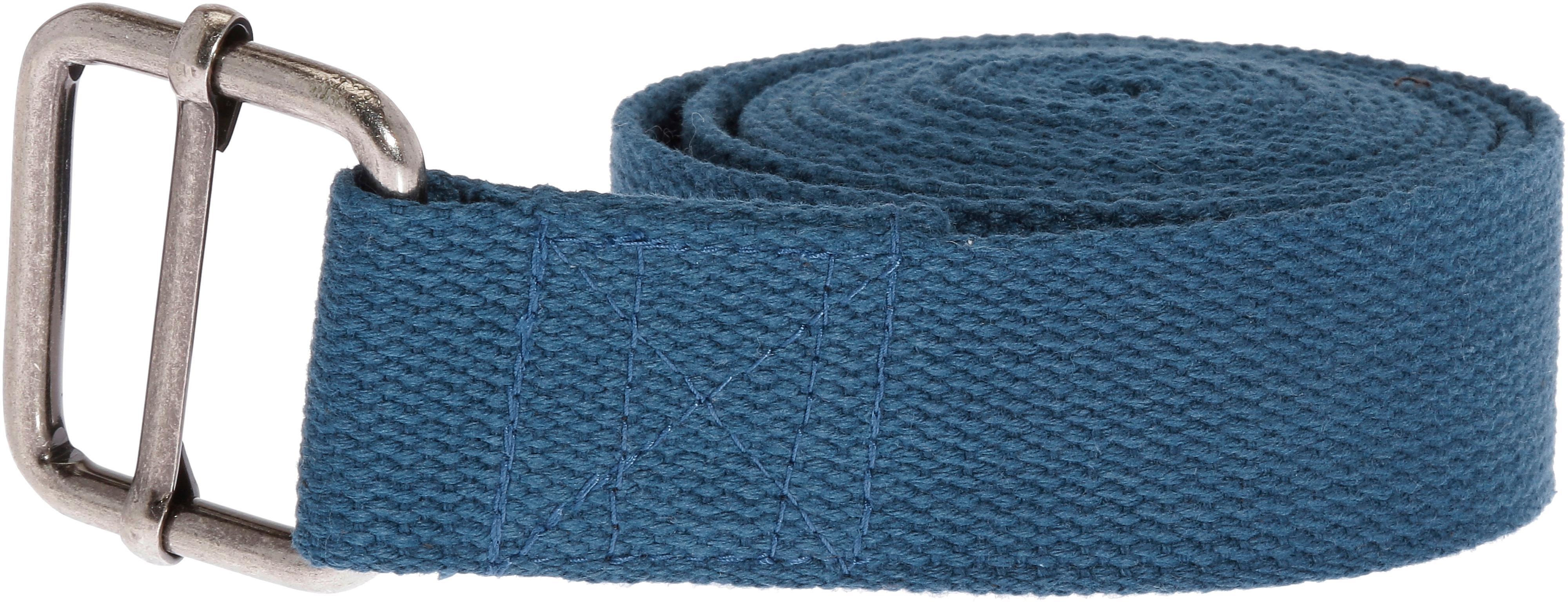 Dicht gewebter Yogagurt aus Baumwolle mit Metallschnalle; stufenlos weitenregulierbar bis Länge: ca. 260 cm; Breite: ca. 3,8 cm.