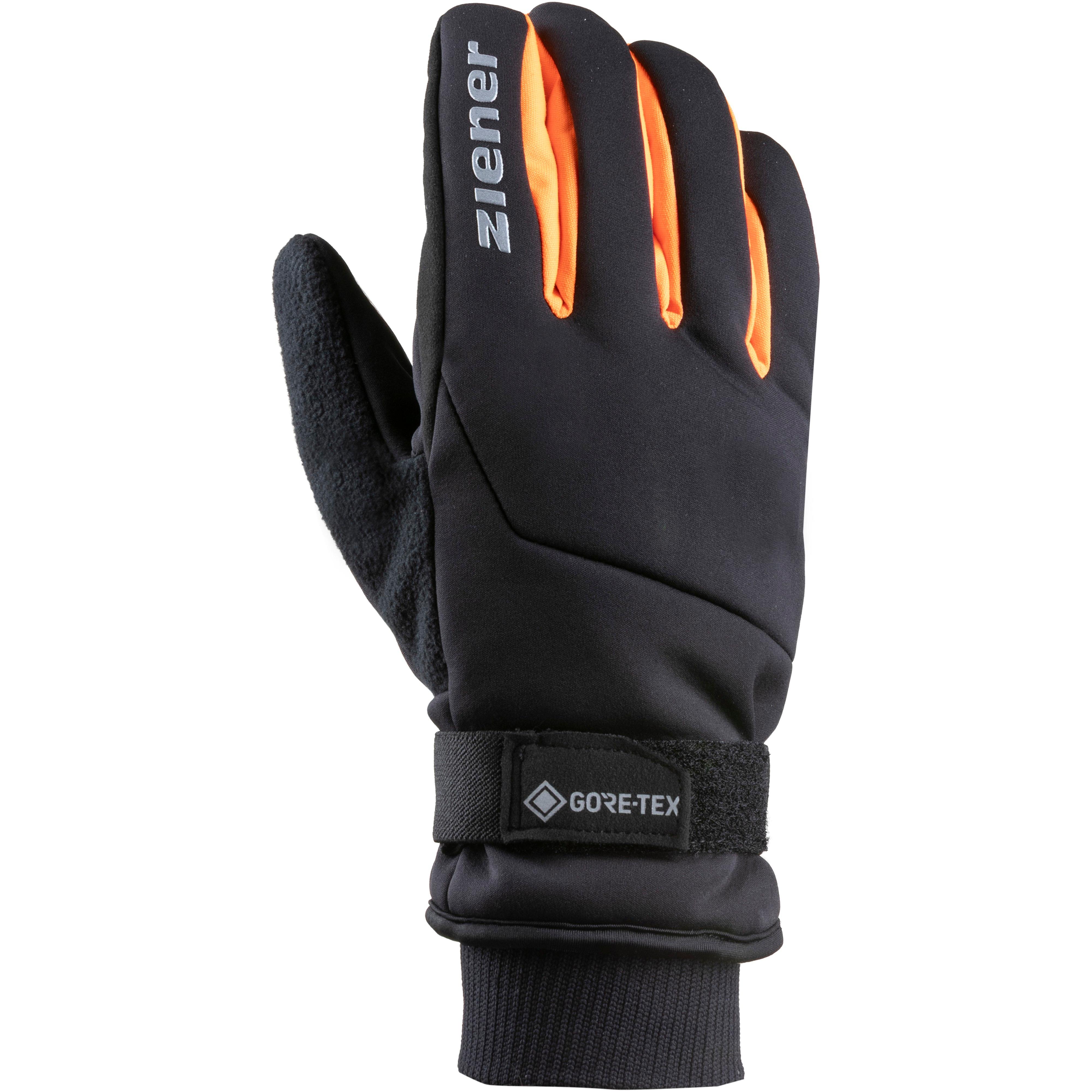 Fahrradhandschuhe mit dauerhaft wasser- und winddichter sowie atmungsaktiver GORE-TEX Membran; wärmeisolierende Wattierung; Fleecefutter; griffige Schaumstoff-Polsterung an der Innenhand, um Vibrationen optimal zu dämpfen; Anti-Rutsch-Funktion durch Grip Control-Silikonbeschichtung; Frotteedaumen; reflektierende Elemente; Obermaterial, Futter und Wattierung 100% Polyester.