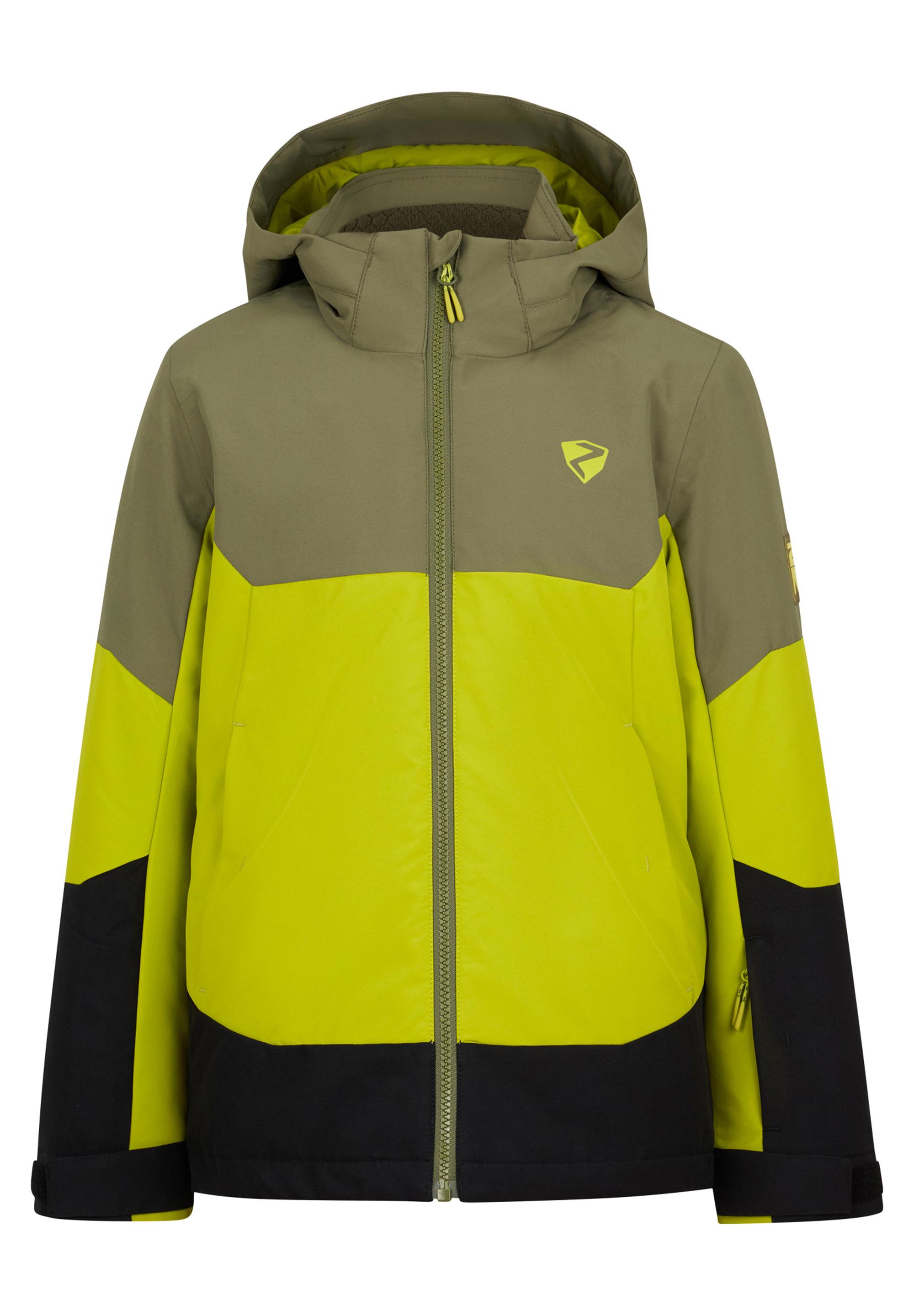 Die funktionelle, wattierte ZIENER Skijacke AGIMO-Z JUNIOR für Jungs hält dank der hochwertigen 120g/m² Wattierung bei kaltem Wetter zuverlässig warm. Zusätzlich ist sie mit der atmungsaktiven, wasser- und winddichten ZIENER AQUASHIELD® Membran (Wassersäule 10.000mm/Atmungsaktivität 10.000g/m²/24h) ausgestattet, die für ein warmes und trockenes Klima sorgt. Wärmendes Futter am Rücken und Kragen sorgt für zusätzliche Isolierung und weiche, elastische Ärmelbündchen garantieren einen perfekten Sitz. Die wichtigsten Nähte sind verschweißt. Die Jacke punktet mit einer Skipasstasche, zwei Eingriffstaschen mit Reißverschluss sowie einer Tasche für Sonnen- und Skibrille. Der Schneefang gehört zur Basisausstattung. Des Weiteren ist sie versehen mit reflektierenden Designelementen. Die Imprägnierung der Jacke ist PFAS-frei. Der Außenstoff ist bluesign® und Standard 100 by OEKO-TEX® zertifiziert. Die Kapuze entspricht der Norm DIN EN 14682 für Sicherheit von Kinderbekleidung.