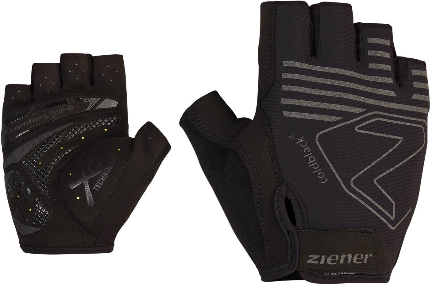 Komfortable Kurzfinger-Fahrradhandschuhe für lange Touren; teilweise aus strapazierfähigem, schnelltrocknendem und atmungsaktivem AX™ Suede-Material; teilweise aus kühlendem coldblack®-Material; rutschfeste Oberfläche; gezielt eingesetzte XRD®-Polsterung, die sich der Hand optimal anpasst; integrierte Fingerschlingen für einfaches An- und Ausziehen; besonders saugfähiges Material am Daumen zum Abwischen von Schweiß während der Fahrt; Klettverschluss mit Einfassung an der scharfen Klettkante; Logodetail; Material I 71% Polyamid, 29% Elastan; Material II 100% Polyester; Material III 80% Polyester, 20% Polyurethan.