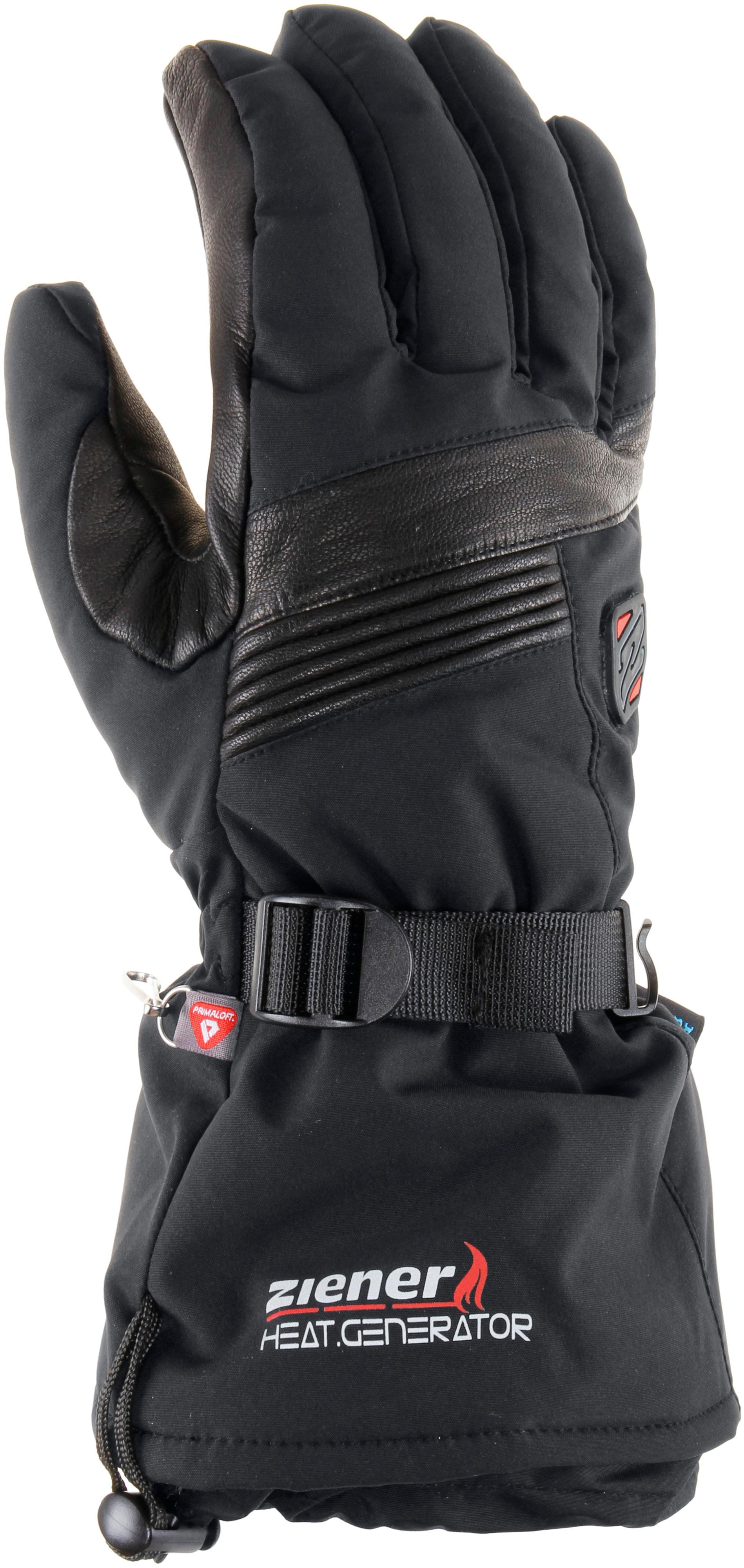 Beheizbare Skihandschuhe mit atmungsaktiver, wasser- und winddichter Aquashield® Membrane; die Heizfunktion erfolgt über einen aufladbaren Akku mit 3 Wärmestufen; bei höchster Stufe heizt der Akku bis zu 4 Stunden ein; die PrimaLoft® Gold Wattierung hält die Hände angenehm warm, ist besonders wasserabweisend, sehr atmungsaktiv und schnelltrocknend; lange Stulpe mit Riegel zum Fixieren und einhändig bedienbarem Cordlock System; elastisches Obermaterial für optimale Bewegungsfreiheit und weiche, robuste Lederinnenhand; Tasche für Akku an der Innenseite der Handschuhstulpe; zusätzliche Sicherungsschlaufe zur Befestigung am Handgelenk; verpackt in einer Stofftasche, inkl. 2 Akkus und 1 Ladegerät; Material 100% Polyester.
