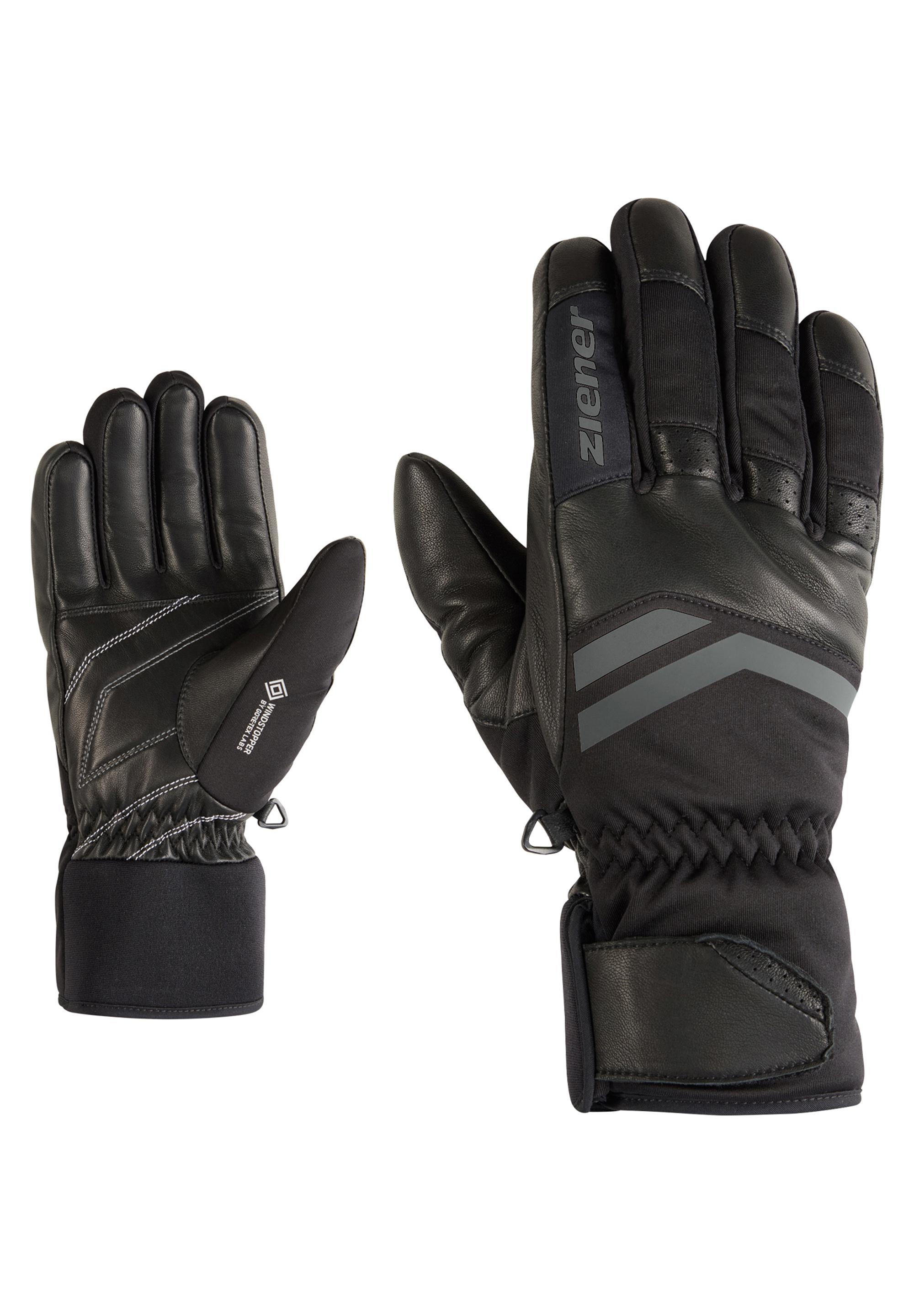 Die vielseitig einsetzbaren ZIENER Handschuhe GUDWIG-Z WS PR sind ausgestattet mit der GORE-TEX® Produkttechnologie und somit absolut winddicht und sehr atmungsaktiv. Die PrimaLoft® Gold Isolierung sorgt auch bei sehr kalten Temperaturen für ein angenehmes Klima im Handschuh und die zusätzliche Plüsch Fütterung machen den Handschuh extra warm. Der Klettverschluss bietet den perfekten Halt am Handgelenk. Der weiche Handschuh punktet durch optimale Funktionalität und Einsatzmöglichkeit im Wintersport. Das Produkt enthält nichttextile Teile tierischen Ursprungs.