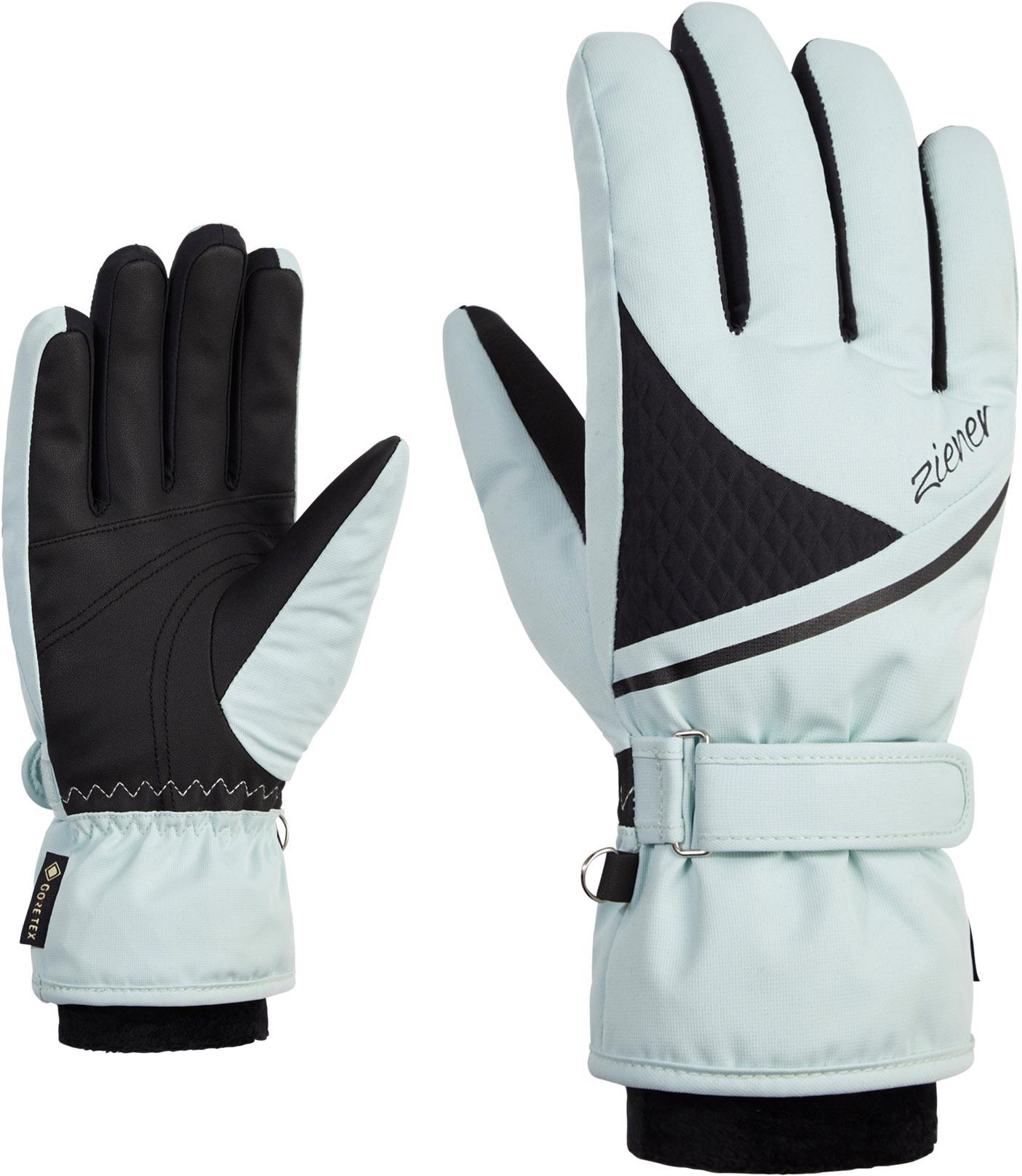 Elegante und warme Skihandschuhe für Damen; GORE-TEX plus warm Technologie für maximale Wärme und Komfort; wasserdicht, winddicht und hoch atmungsaktiv; weiche Wattierung; Plüschfutter am Bündchen; Gummizug am Handgelenk; Klettverschluss; Material 100% Polyester.