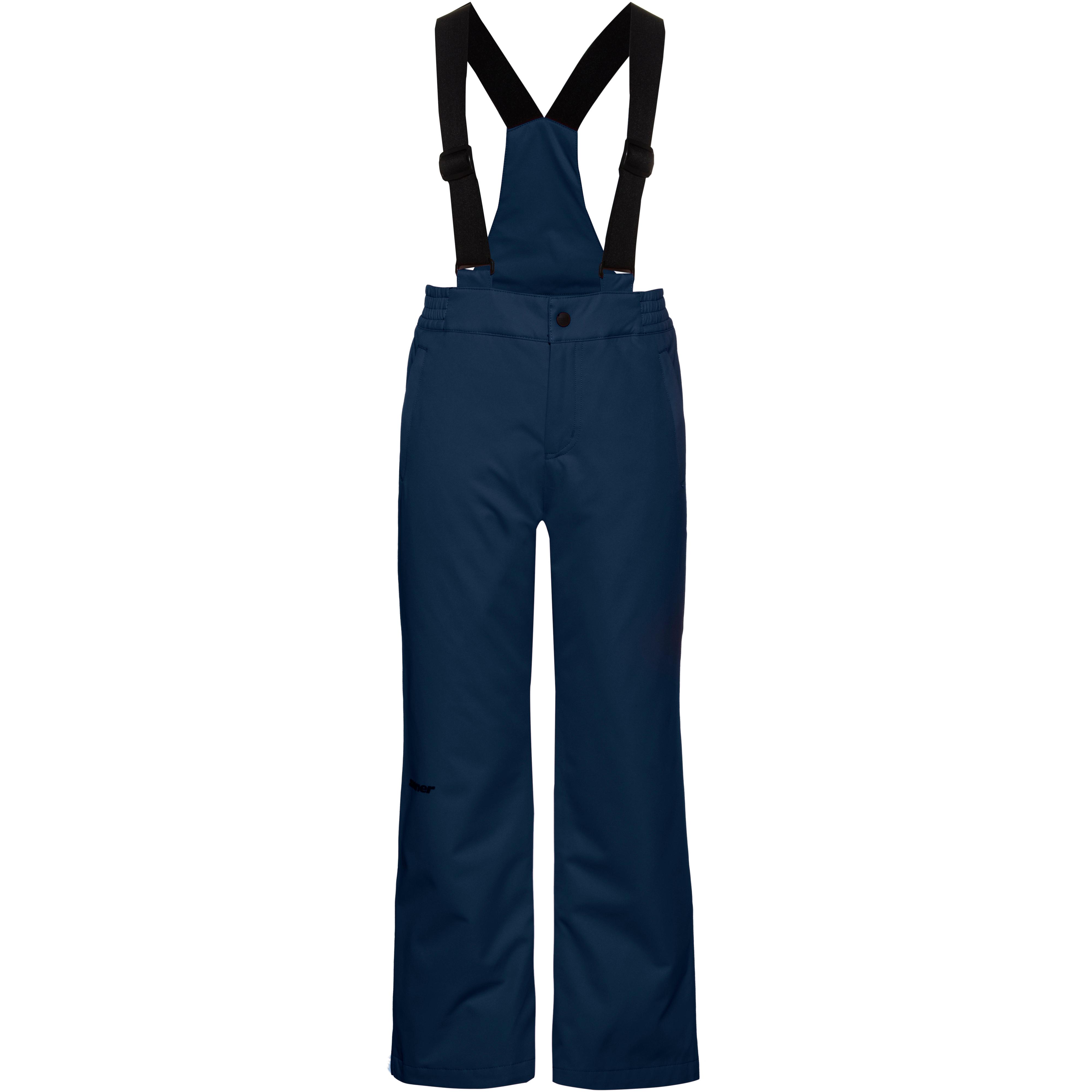 Warm wattierte Skihose für Kinder, mit wind- und wasserdichter sowie hoch atmungsaktiver Aquashield®-Technologie; Wassersäule 10.000 mm; ohne PFC hergestellt; verstellbare Hosenträger; teilelastischer Bund mit Knopf-und Reißverschluss; 2 seitliche Reißverschlusstaschen mit verlängerten Zippbändchen; Beinabschlüsse mit integrierten Schneegamaschen mit Antirutschbeschichtung; synthetische Wärmeisolierung; Material I 100% Polyester, Material II 100% Polyamid.