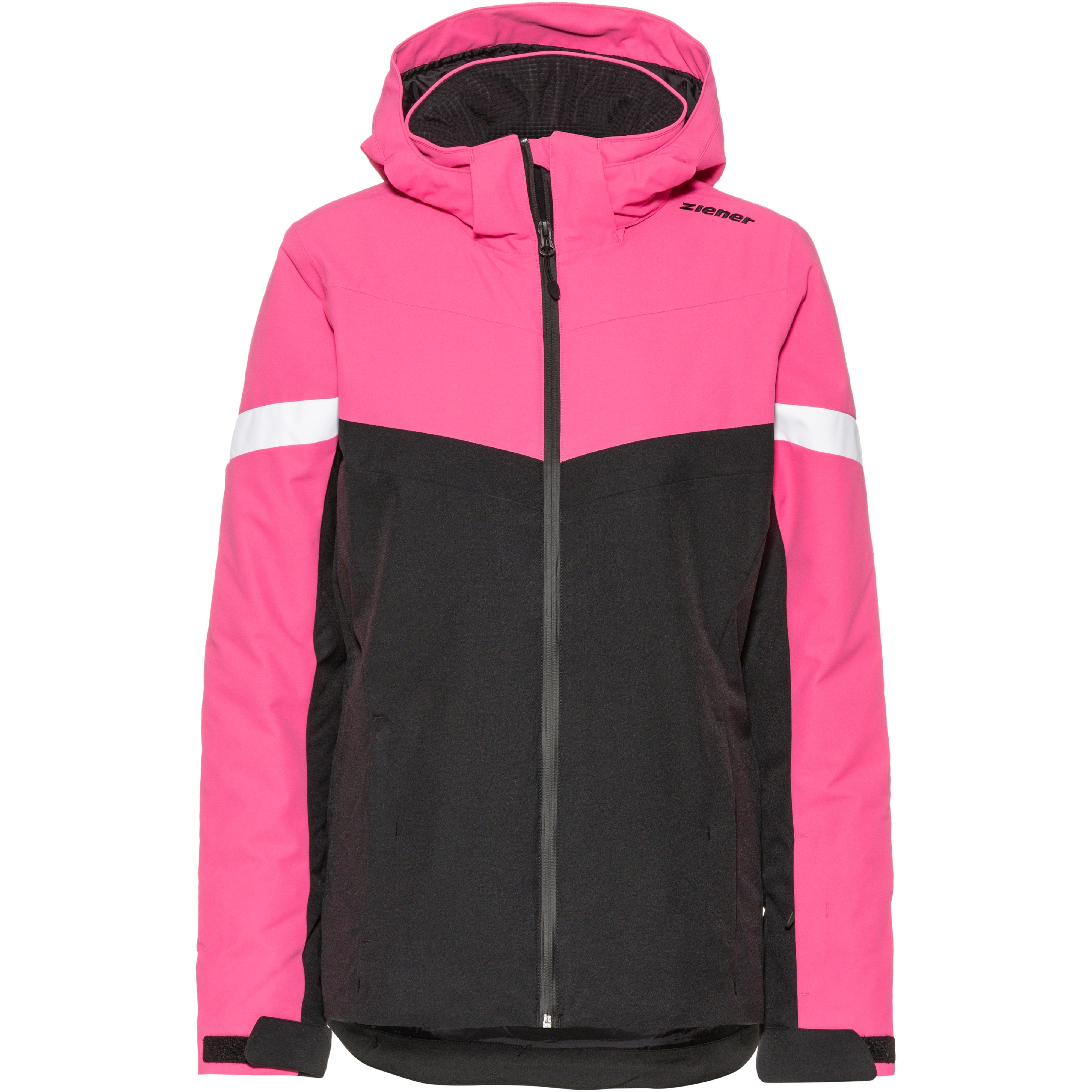 Skijacke mit wind- und wasserdichter sowie hoch atmungsaktiver Aquashield®-Technologie; Wassersäule 10.000 mm; abnehmbare Kapuze; Kragen mit Kinnschutz; wasserdichter, hinterlegter Frontreißverschluss; vorgeformte Ärmel mit weitenregulierbaren Armabschlüssen und integrierten, elastischen Gamaschen; Liftpasstasche; kurze, mit Mesh hinterlegte Belüftungsreißverschlüsse in den Seiten; verdeckte Seitentaschen mit Reißverschlüssen; verlängerte Zippbändchen; flauschig wärmendes Teddyfutter im Rückenbereich; 1 Innentasche mit Reißverschluss; 1 weitere Innentasche aus Mesh; Schneefang mit Antirutsch-Aufdruck; Stopper im Bund; Material 100% Polyester.
