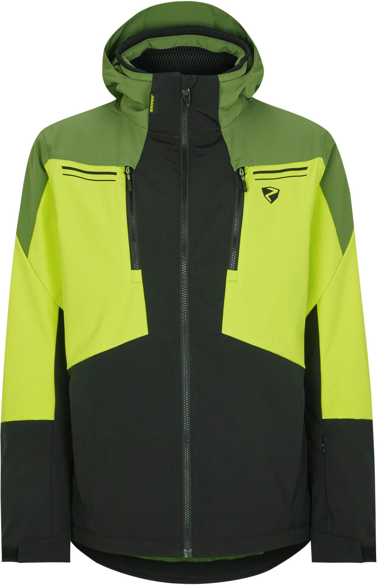 Funktionelle, wattierte Skijacke für Herren; durch Kordelzug verstell- und abnehmbare Kapuze; Kinnschutz am Kragen; unterlegter Frontreißverschluss; 2 Brusttaschen mit Reißverschluss; alle Reißverschlüsse wasserabweisend; 1 Liftpasstasche auf dem Ärmel; regulierbare Ärmelabschlüsse mit elastischen Innenbündchen; integrierter Schneefang; verlängertes Rückenteil mit abgerundetem Saum; wind- und wasserdichte sowie atmungsaktive Aquashield® Membran; Wassersäule: 10.000 mm; getapte Nähte; atmungsaktives, leichtes Isolationsmaterial; Material 100% Polyester; Material II 100% Polyamid.