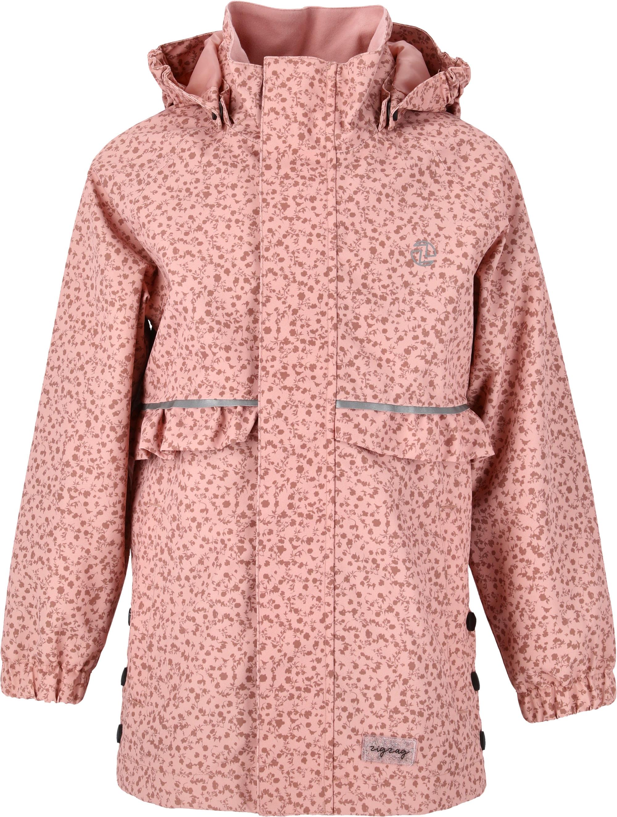 Die funktionale Kinderjacke "Flicka W-PRO 10000" von ZIGZAG schützt vor Wind und Wetter und sieht dabei auch noch toll aus! Sie ist wind- und wasserdicht (10.000 mm Wassersäule) und mit getapten Nähten und wasserabweisender Membran ausgestattet. Zudem ist sie mit einer verstellbaren und abnehmbaren Kapuze mit Gummizug, Reflektoren, einem Windschutz im Frontbereich und einem wasserabweisenden Reißverschluss mit Kinnschutz versehen. Die Jacke ist atmungsaktiv und lässt die Luft optimal zirkulieren. Optisch besticht sie mit einem stylischen Muster und einem tollen Design!