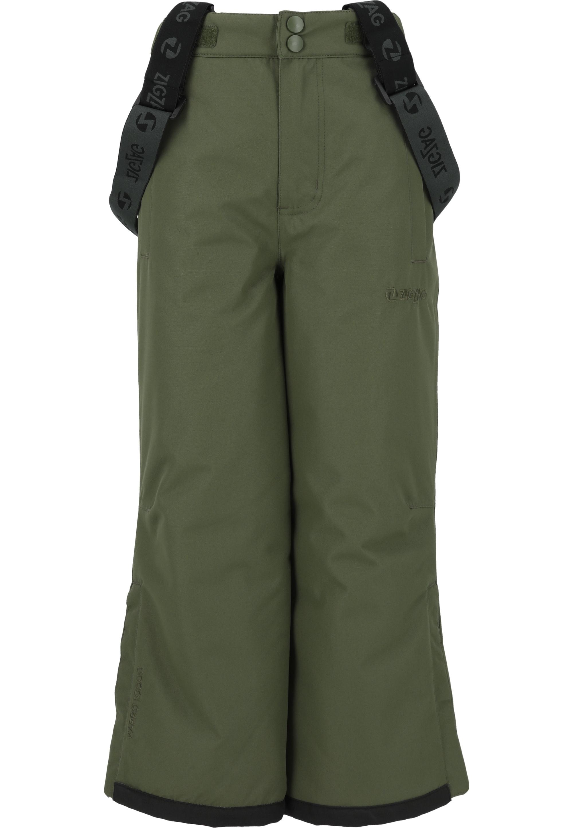 Mit der Skihose "Soho" für Kinder von ZIGZAG kann es ab auf die Piste gehen! Das Shell-Obermaterial aus Polyester und die bewährte W-Pro 10.000 mm Membran ist wasser- und winddicht sowie atmungsaktiv. Zudem sind alle Nähte wasserdicht verschweißt. Der Bund kann in der Weite reguliert werden und die Hosenträger sind abnehmbar. Der Schneefang und der Klettverschluss am Beinende halten Schnee sicher ab. Das Lift-Ticket kann entweder in der linken oder rechten Reißverschluss Front-Tasche untergebracht werden. Die Wattierung gibt an kalten Tage eine gute Wärmeisolierung. Wir von ZIGZAG aus Dänemark haben es uns zur Aufgabe gemacht, qualitativ hochwertige Kinderkleidung zu erschwinglichen Preisen anzubieten. Unser Ziel dabei: Kleine Entdecker und Abenteurer unter allen Wetterbedingungen warm wie trocken zu halten und immer besten Schutz zu geben. Genau das bietet ZIGZAG-Kleidung, denn Kinder sollten bei jedem Wetter draußen spielen können. Ein angemessenes Preis-Leistungsverhältnis gibt es obendrein.