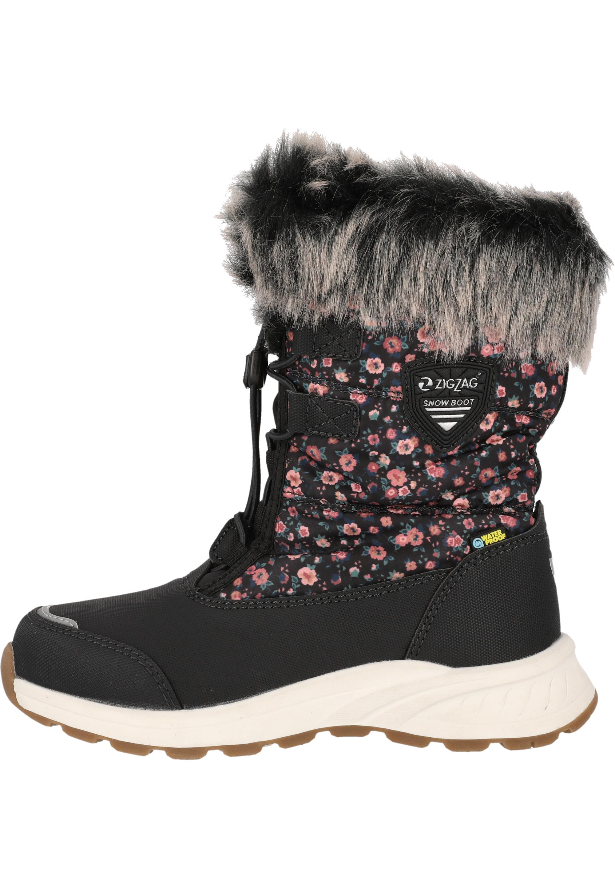 Der wasserdichte Winterstiefel "Wesend" für Kinder von ZIGZAG ist der perfekte Begleiter für nasskalte Tage! Der Schuh hält die Füße warm und trocken und erlaubt so unbeschwertes Gehen und Spielen den ganzen Tag. Sein Obermaterial besteht aus Nylon und Polyurethan mit einem stylischen Kunstfellbesatz. Die Innenauskleidung aus Fleece sorgt für eine angenehme Wärme. Die Zwischensohle aus EVA und Textil bettet Kinderfüße atmungsaktiv und bequem und lässt sich herausnehmen, während die robuste TPR-Sohle verschiedenen Belastungen standhält und mit ihrem Allwetterprofil dem Ausrutschen vorbeugt. Zusätzliche Verstärkungen machen den Schuh besonders langlebig. Das Schnellschnürsystem macht das An- und Ausziehen sowie das Justieren zum absoluten Kinderspiel. Wir von ZIGZAG aus Dänemark haben es uns zur Aufgabe gemacht, qualitativ hochwertige Kinderkleidung zu erschwinglichen Preisen anzubieten. Unser Ziel dabei: Kleine Entdecker und Abenteurer unter allen Wetterbedingungen warm wie trocken zu halten und immer besten Schutz zu geben. Genau das bietet ZIGZAG-Kleidung, denn Kinder sollten bei jedem Wetter draußen spielen können. Ein angemessenes Preis-Leistungsverhältnis gibt es obendrein.